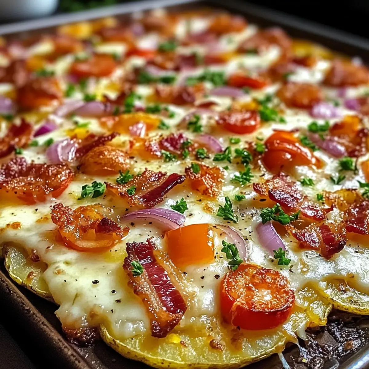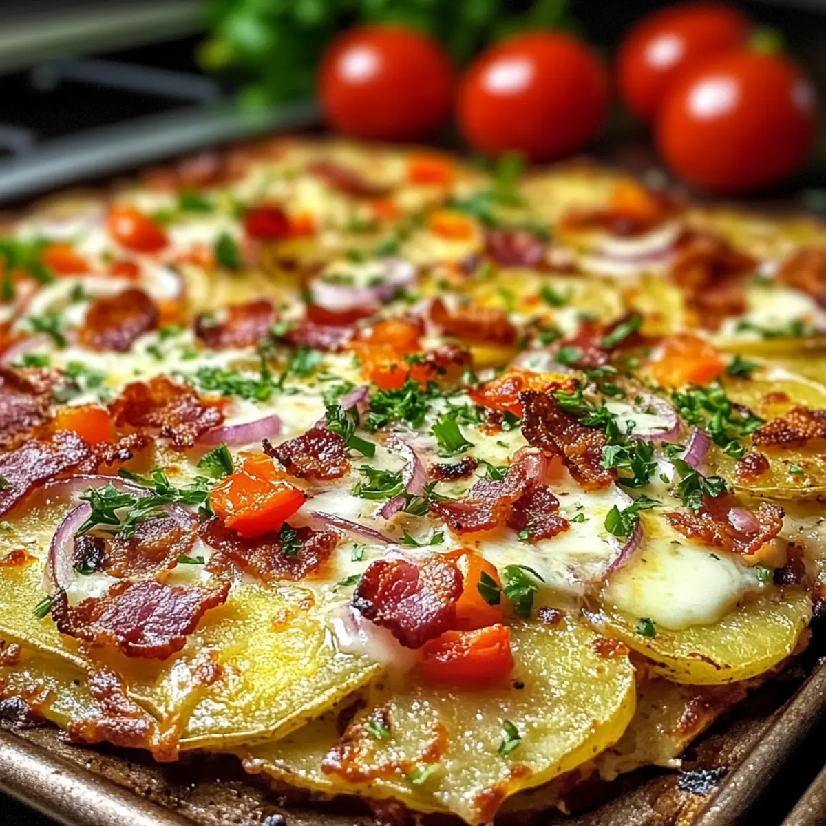 • Entdecke die herzhaften Bestandteile für eine köstliche Kartoffelpizza vom Blech!