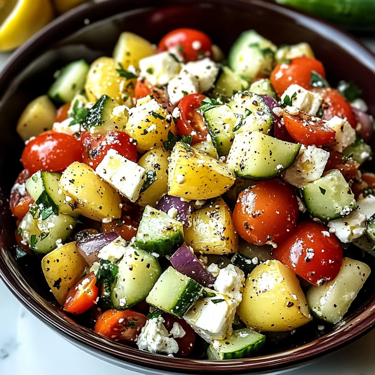 Als ich das erste Mal in die sonnigen Gassen von Istanbul eintauchte, wurde ich von den Aromen der Straßenküchen verzaubert. Besonders die lebendige Mischung aus frischen Zutaten und überraschenden Gewürzen hatte es mir angetan. Heute lade ich euch ein, mit meiner Rezeptur für einen türkischen Kartoffelsalat selbst in diese geschmackvolle Welt einzutauchen. Der Kartoffelsalat ist nicht nur glutenfrei und vegetarisch, sondern lässt sich auch in kürzester Zeit zubereiten – perfekt für ein leichtes Mahl an warmen Tagen! Mit knusprigen Gemüsestücken, cremigem Feta und dem besonderen Kick von Sumac wird dieser Salat nicht nur zur Augenweide, sondern auch zum Star deiner nächsten Zusammenkunft. Seid ihr bereit, mit mir zusammen in diesen frischen Genuss einzutauchen?