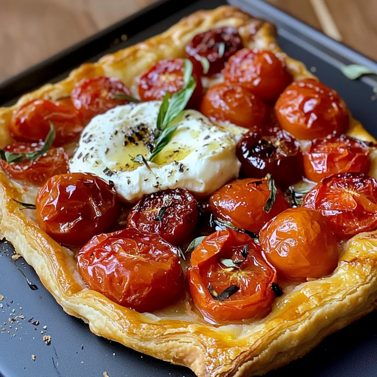 - Würzige Variante: Füge eine Prise rote Chilipulver oder frisch gehackte Chilis zu den karamellisierten Tomaten hinzu, um der Tarte einen würzigen Kick zu verleihen. Der Kontrast zwischen süß und scharf macht sie besonders aufregend.