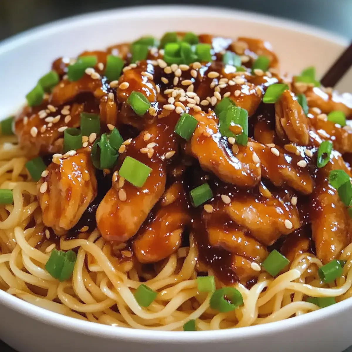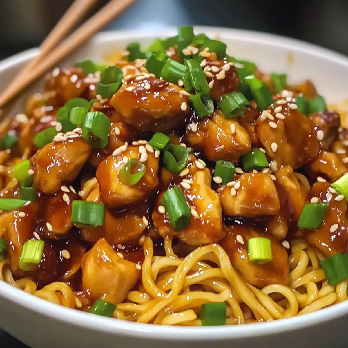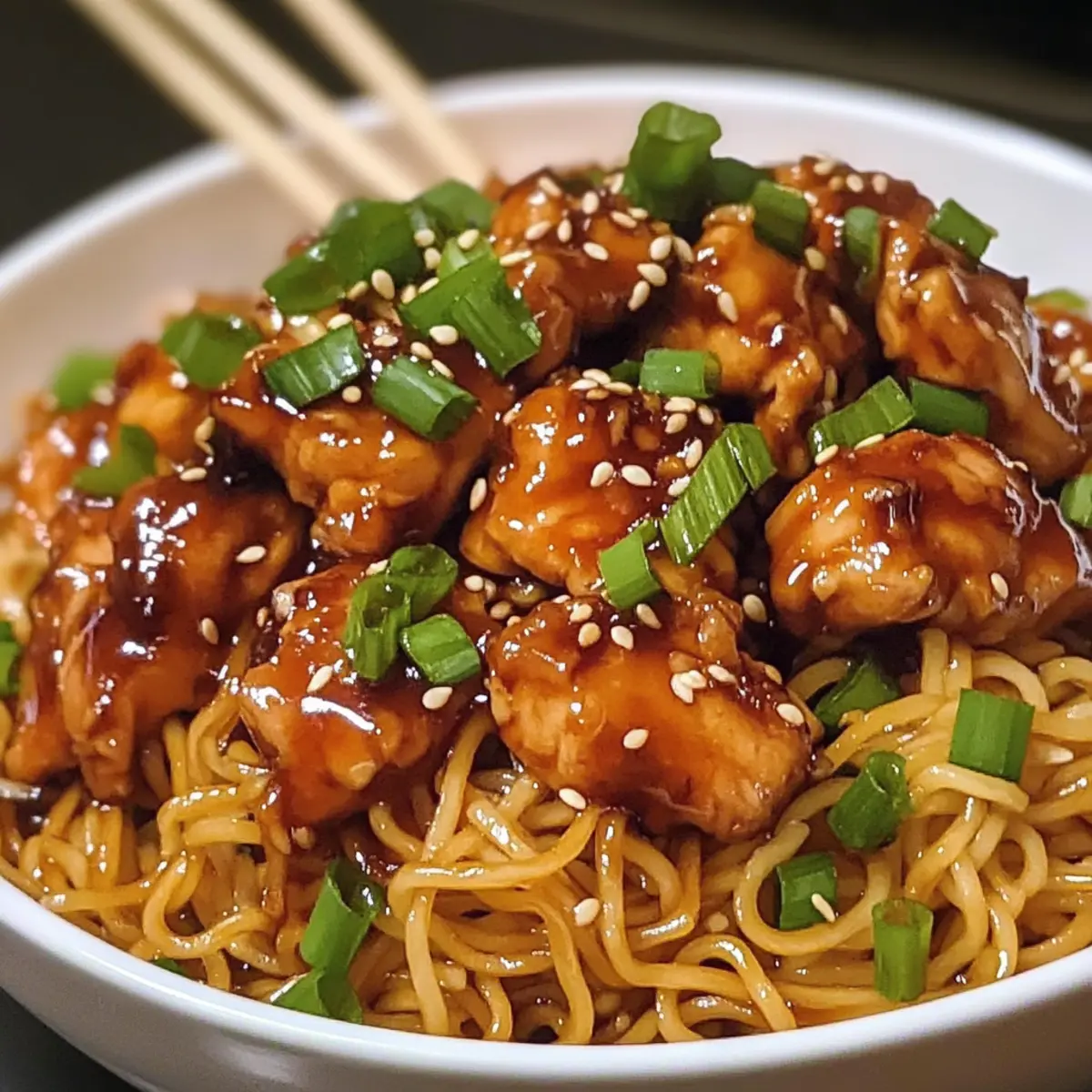 Klebrige Knoblauch-Hühnchen-Nudeln: Ein Genuss für alle Sinne