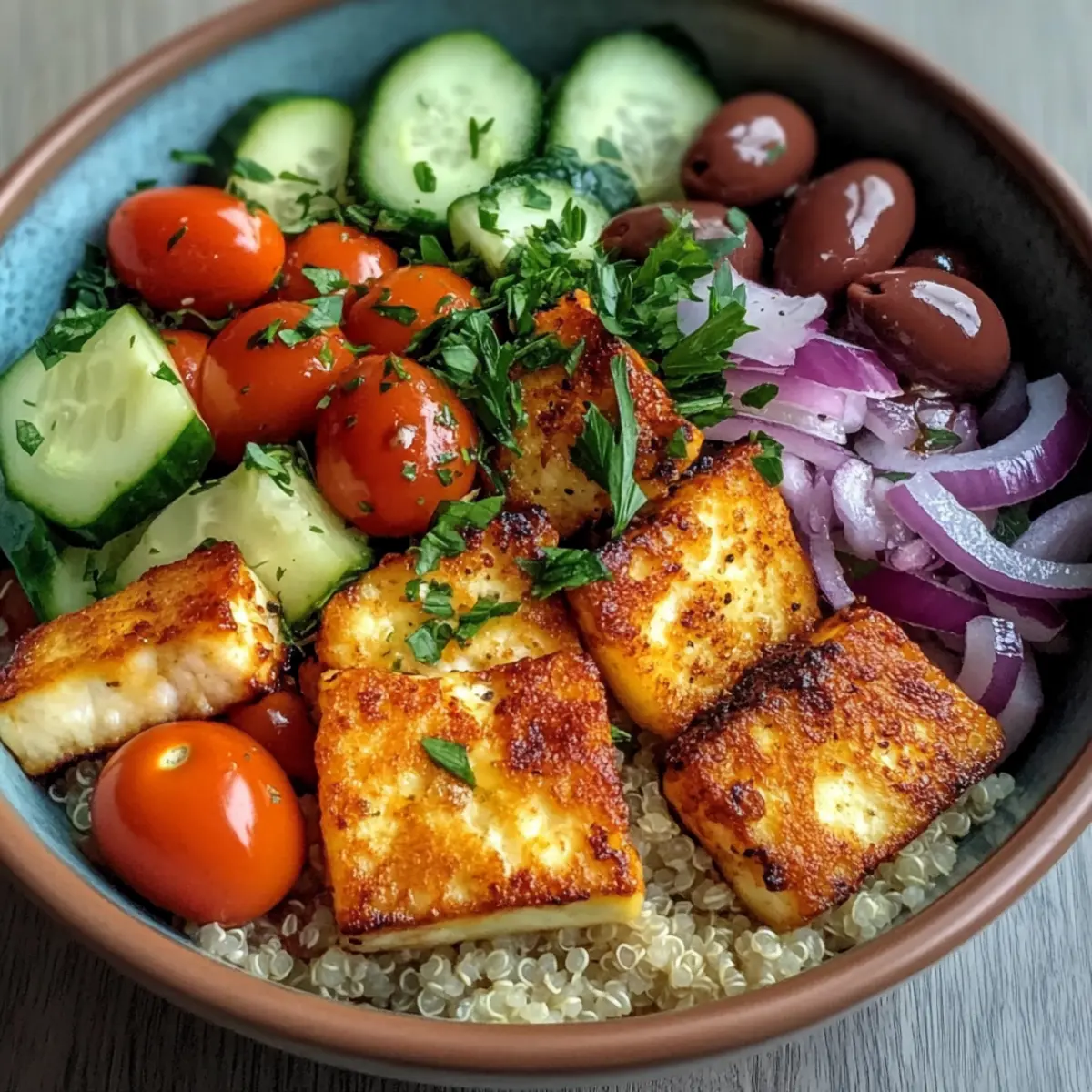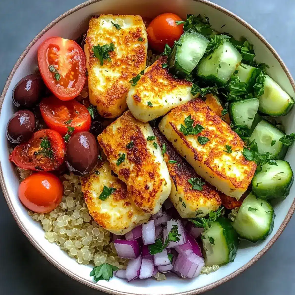 Knusprige Halloumi Griechische Kraftschale für Power-Genuss
