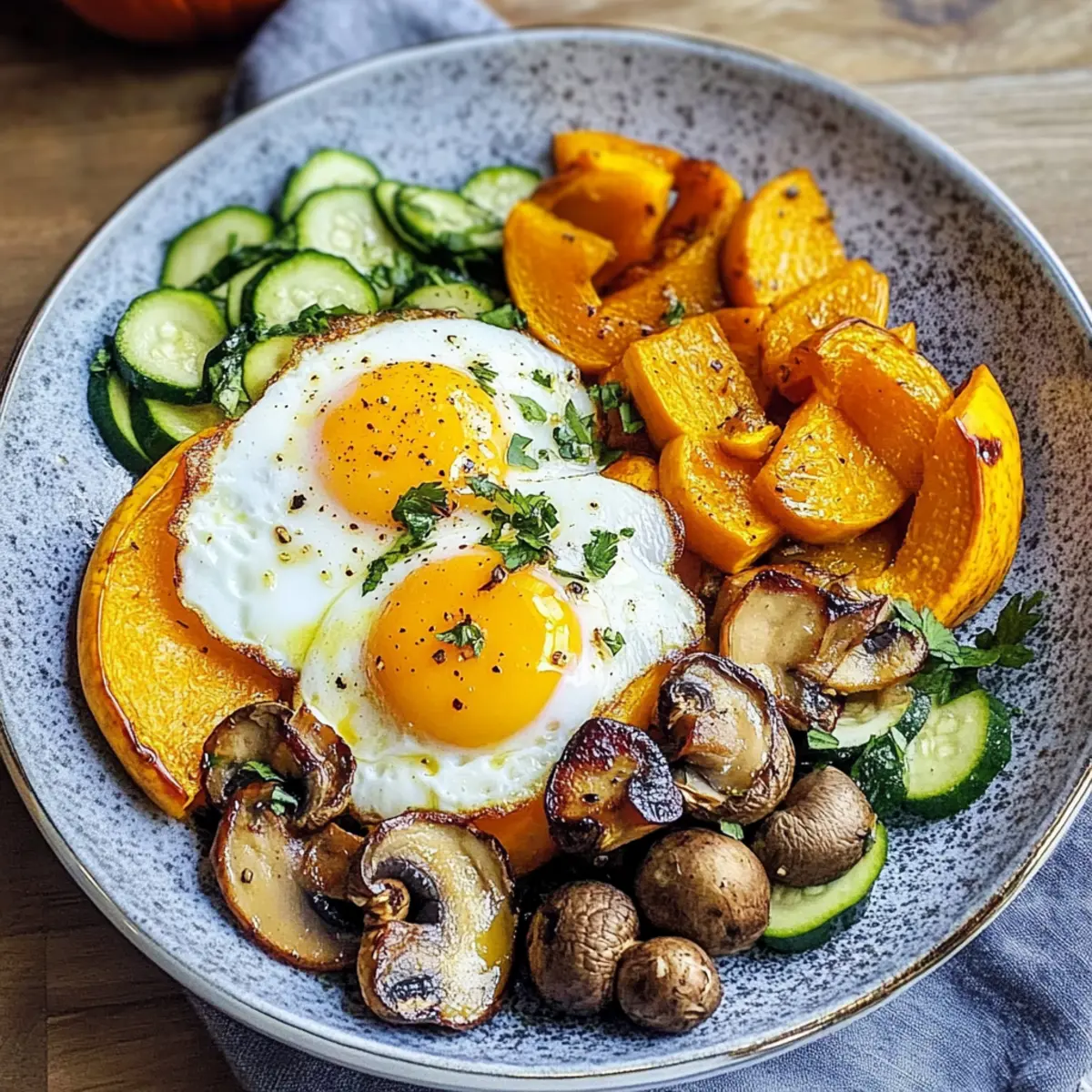 Kurkuma Spiegelei mit geröstetem Kürbis genießen