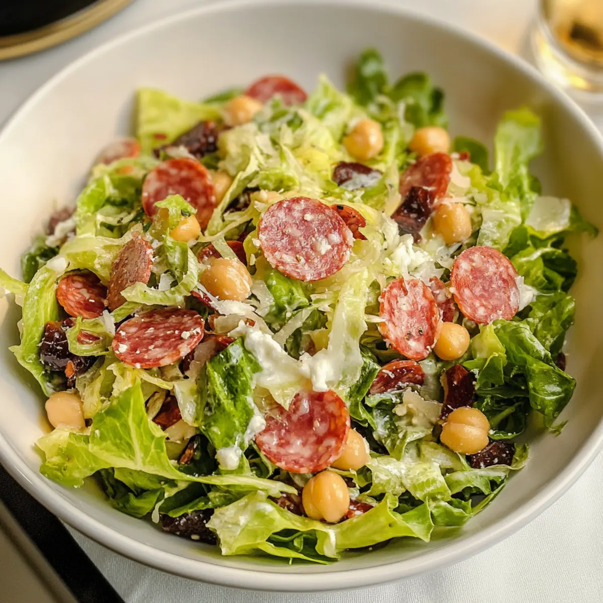 Es ist kaum zu fassen, dass ein einfacher Salat sowohl schick als auch köstlich sein kann! Der La Scala gehackte Salat, ein absoluter Favorit der Hollywood-Stars, vereint in sich das Beste aus der frischen Küche. In nur 15 Minuten zubereitet, ist dieses Rezept nicht nur perfekt für ein unkompliziertes Mittagessen, sondern auch ein echter Hingucker bei eleganten Dinnerpartys. Mit knackigem, fein gehacktem Romanasalat, herzhaftem Salami, cremigem Mozzarella und sättigenden Kichererbsen, verleiht das pikante Dressing diesem Gericht das gewisse Etwas. Noch dazu ist der Salat anpassbar, sodass du ihn ganz nach deinem Geschmack variieren kannst! Bist du bereit, dir diesen Star-Salat auf den Teller zu zaubern?