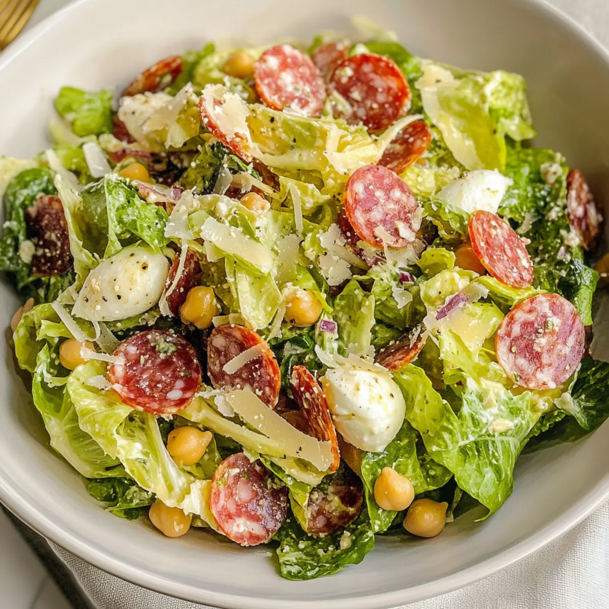 - Genoa-Salami – verleiht dem Salat eine herzhafte Note; ersetze sie durch Truthahn-Salami für eine leichtere Variante.