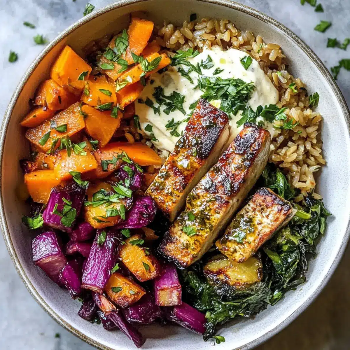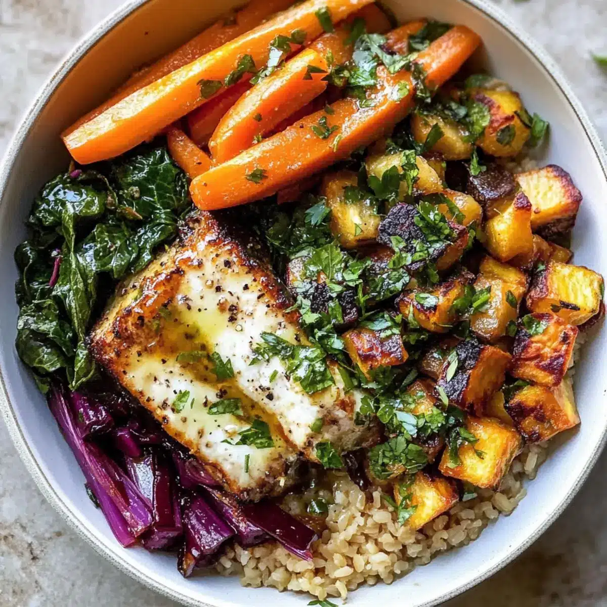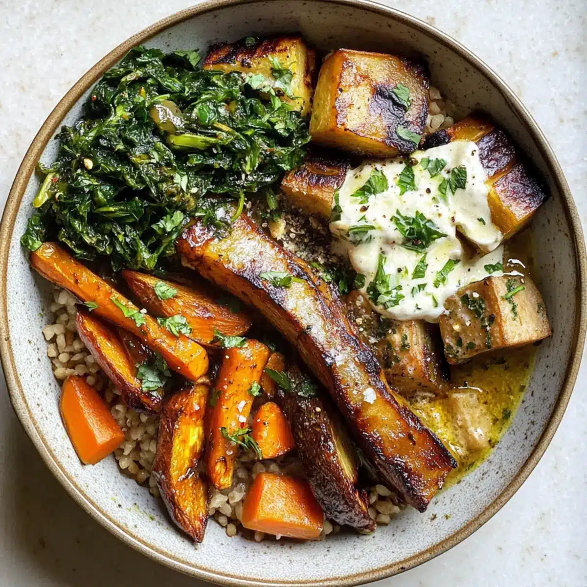 Saisonales Gemüse: Ersetze die Karotten durch geröstete Pastinaken oder Süßkartoffeln, um eine süßere, erdige Note zu erzielen. Das bringt Abwechslung und neue Geschmacksdimensionen.