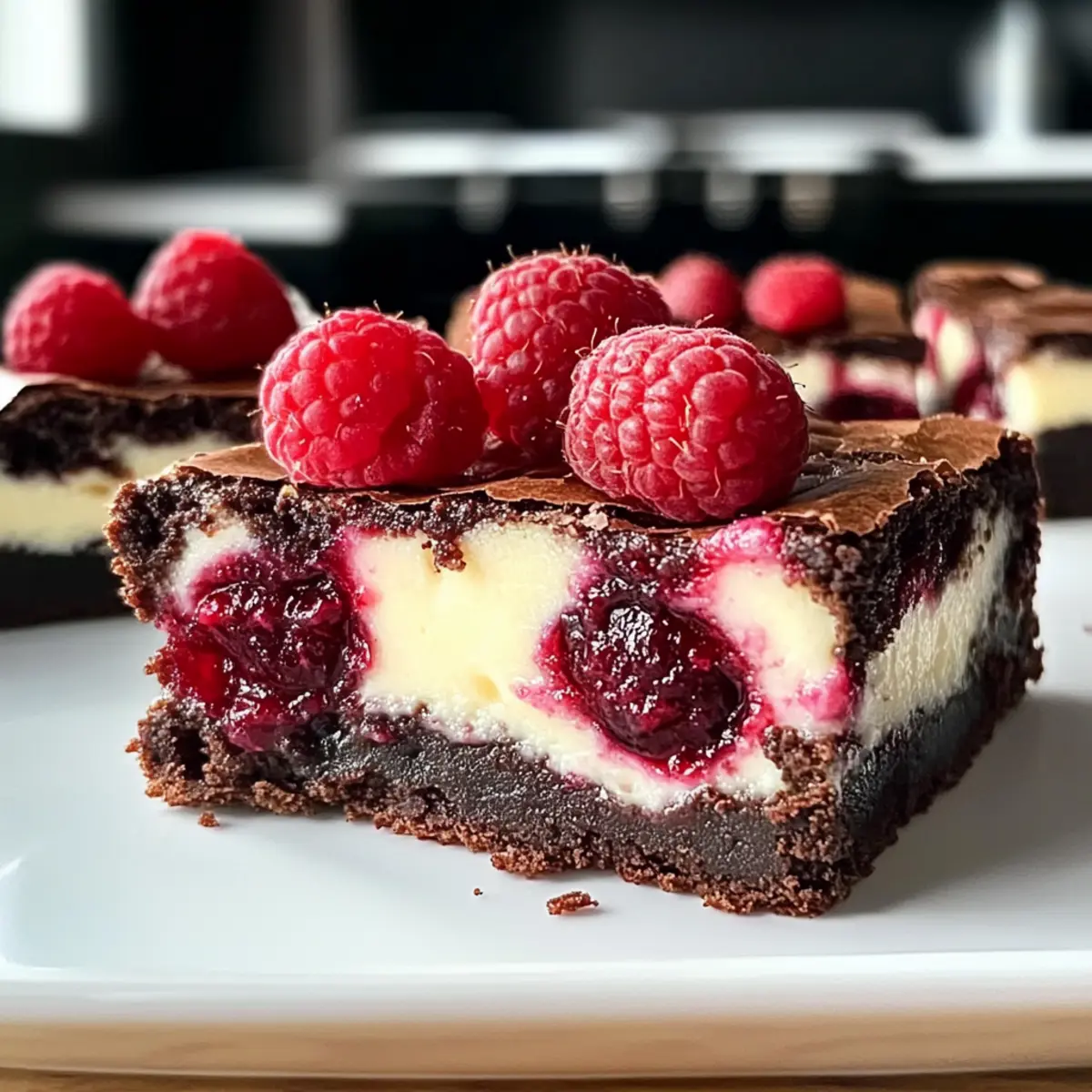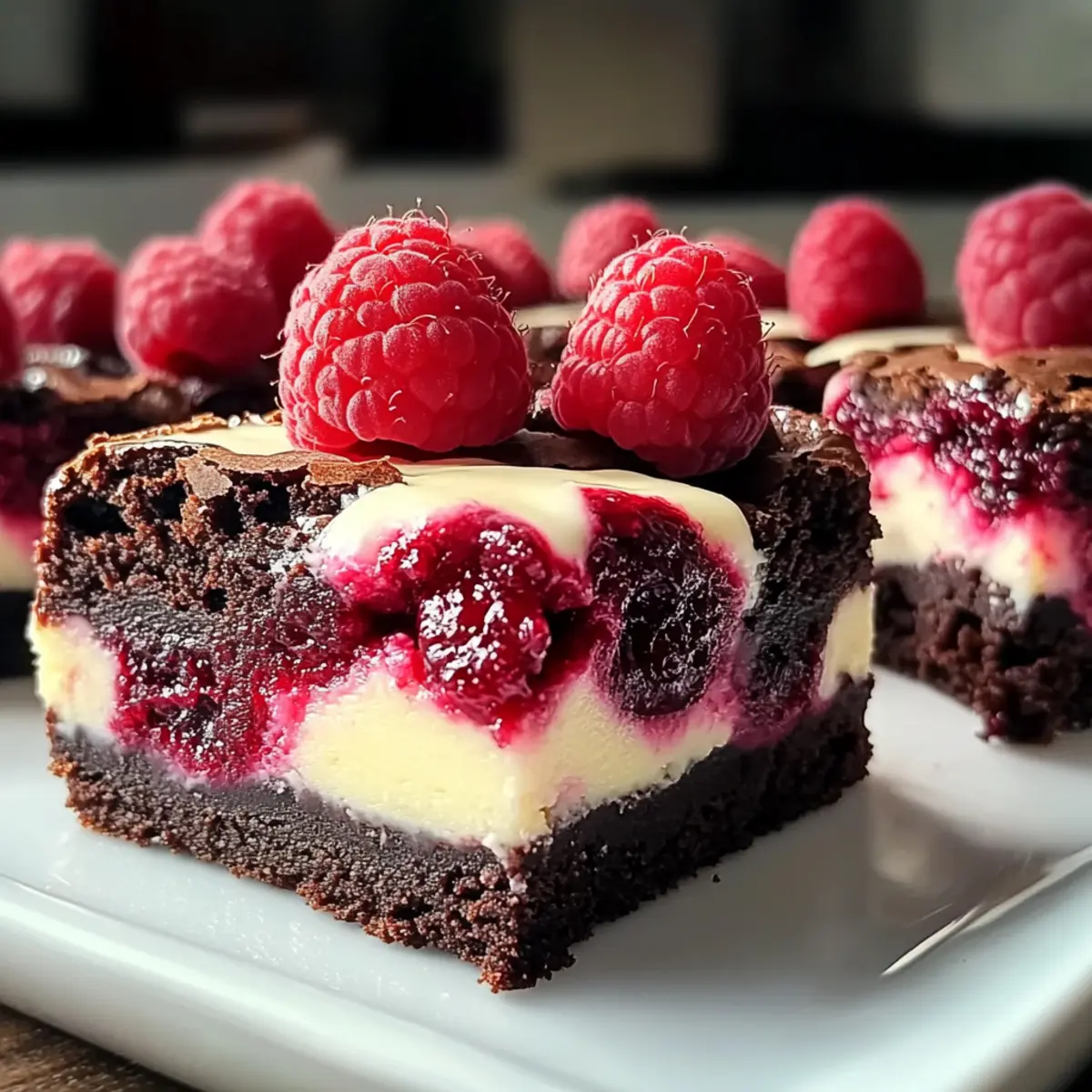Leckere Brownies mit Cheesecake und Himbeeren