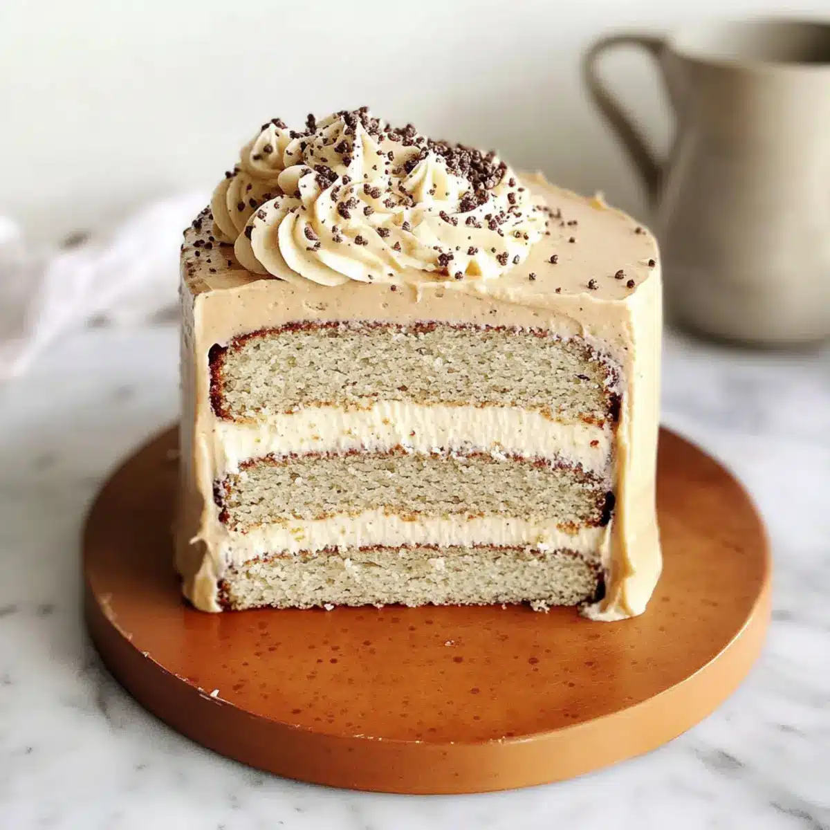 Der Kuchen kann bis zu 2 Tage bei Raumtemperatur in einem luftdichten Behälter aufbewahrt werden. Im Kühlschrank bleibt die Frische für etwa 5 Tage erhalten. Wickele ihn gut ein, um das Austrocknen zu verhindern. Für eine längere Lagerung kannst du die Kuchenlagen bis zu 2 Monate einfrieren.