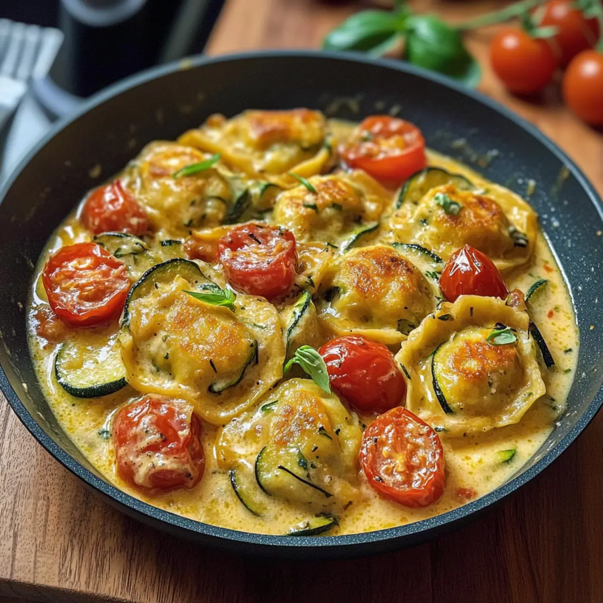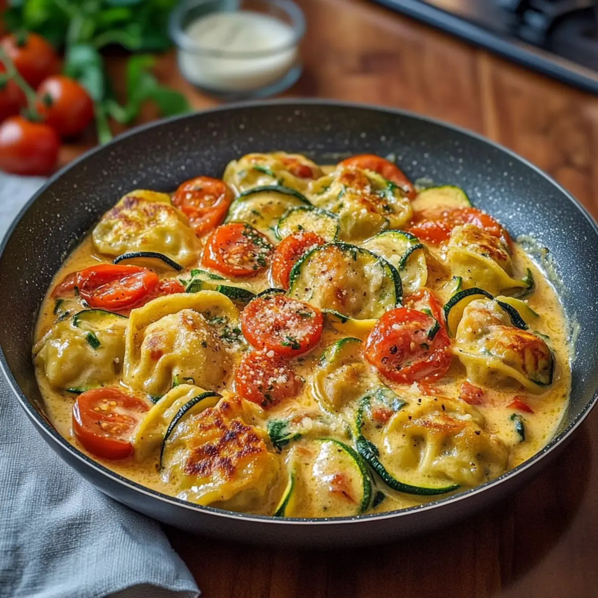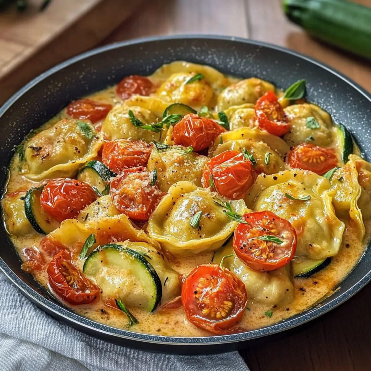 Genießen Sie die Zubereitung dieser köstlichen Maultaschen mit Zucchini und Tomaten!