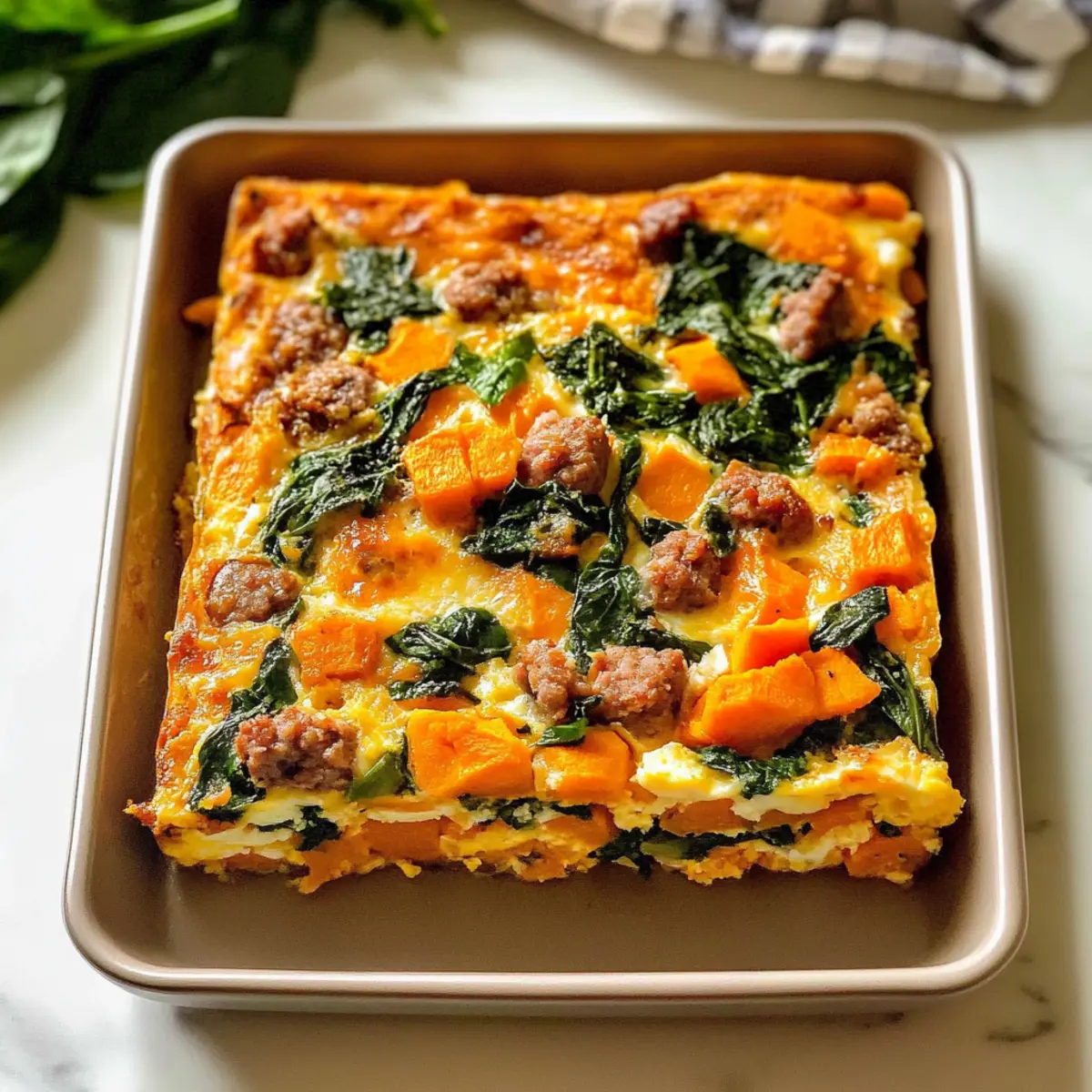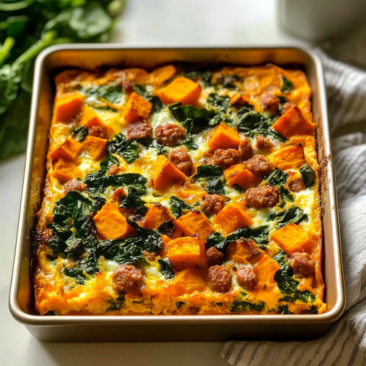 Milchfreier Eierauflauf mit Süßkartoffeln und Spinat