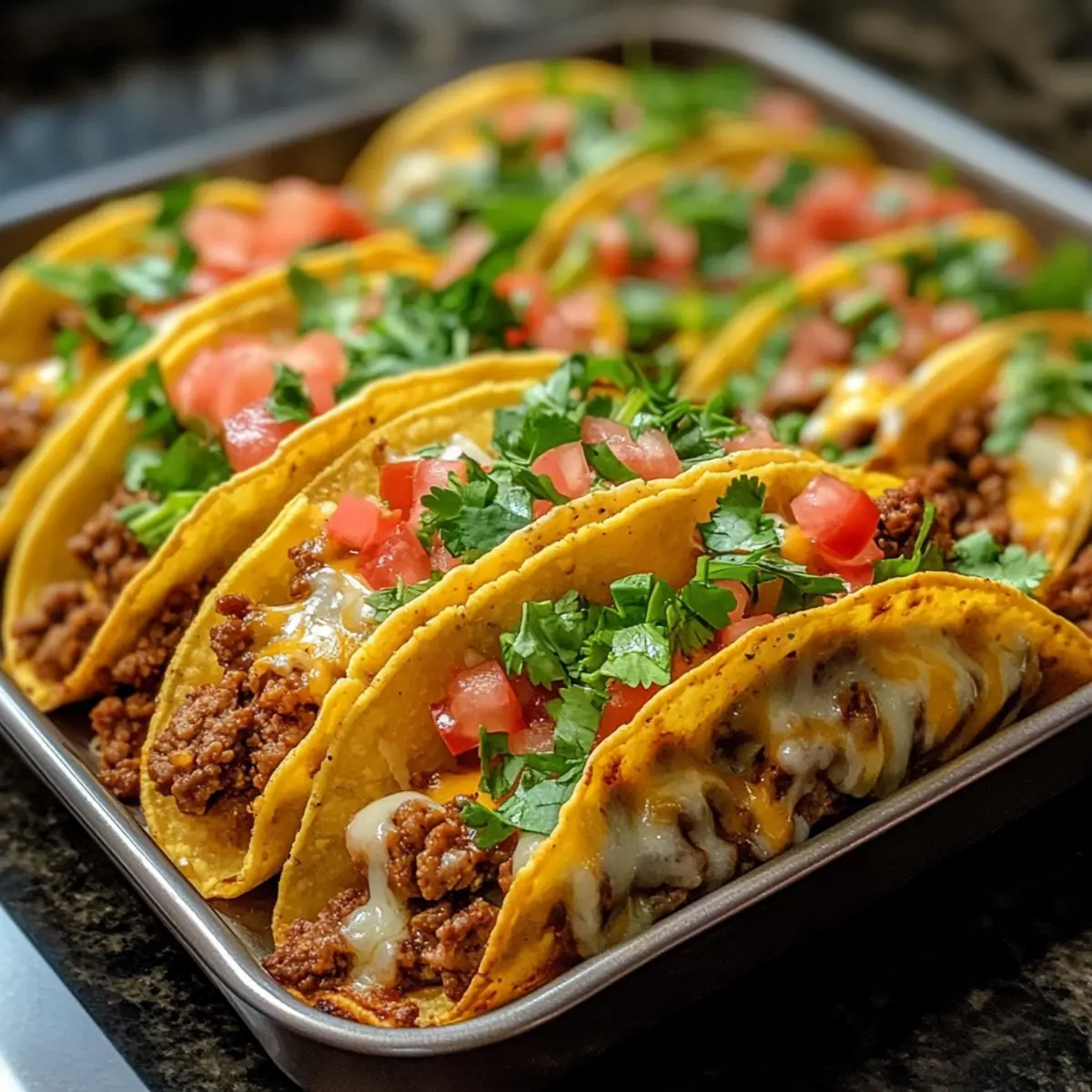 • Beobachte die Backzeit: Halte die letzten Minuten die Tacos im Auge; der perfekte Moment ist, wenn der Käse blubbert und die Schalen goldbraun sind.
