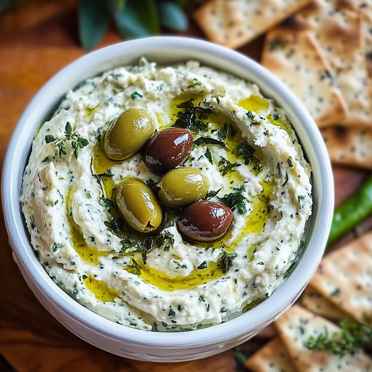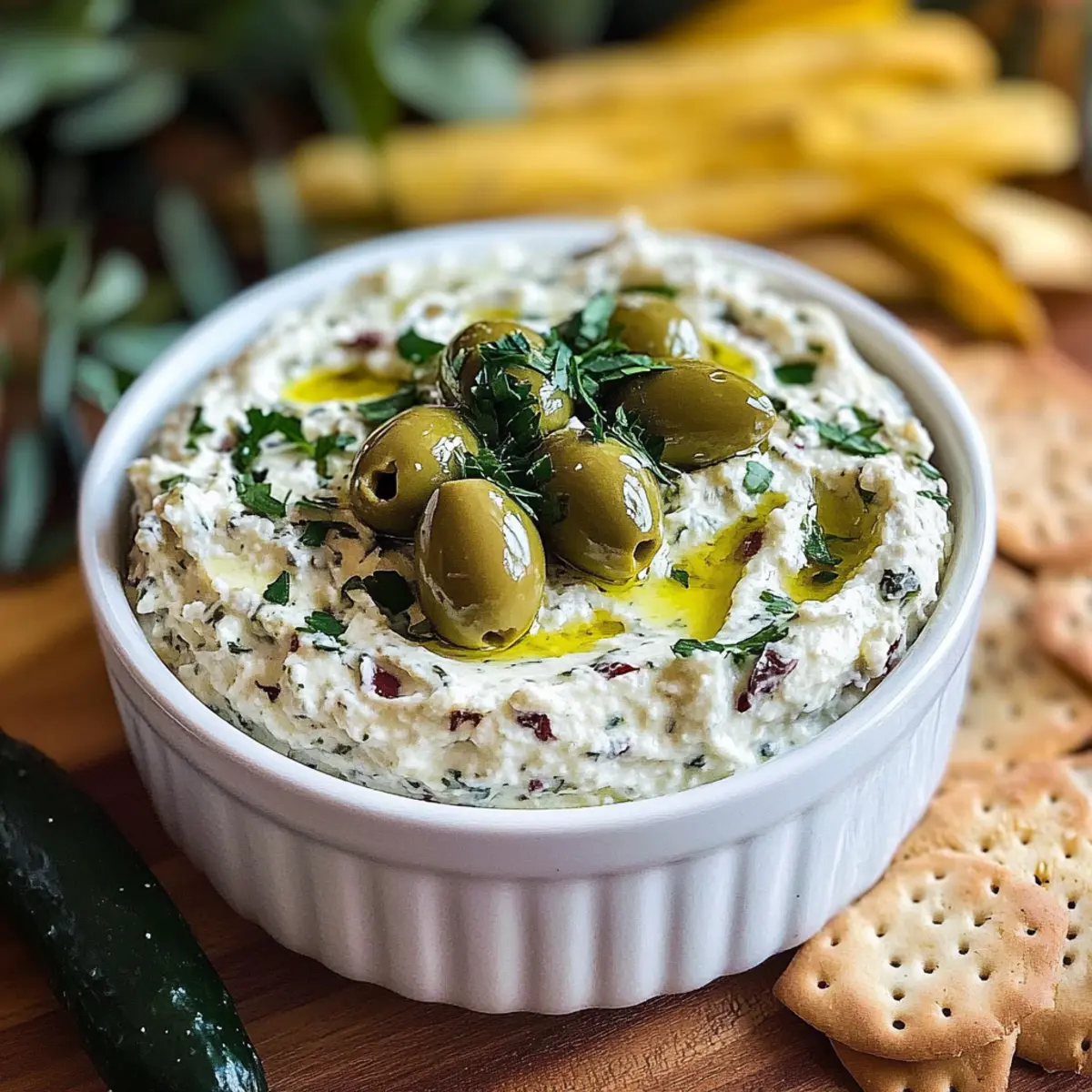 Olivenliebhaber Traumdip mit Feta und grünen Oliven