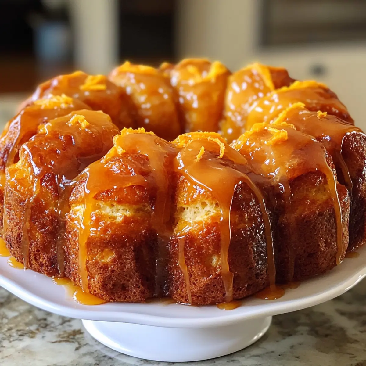 Glasur perfektionieren: Gieße die Glasur gleichmäßig über die Teigstücke, um sicherzustellen, dass jeder Bissen von dem süßen, orangigen Geschmack profitiert.