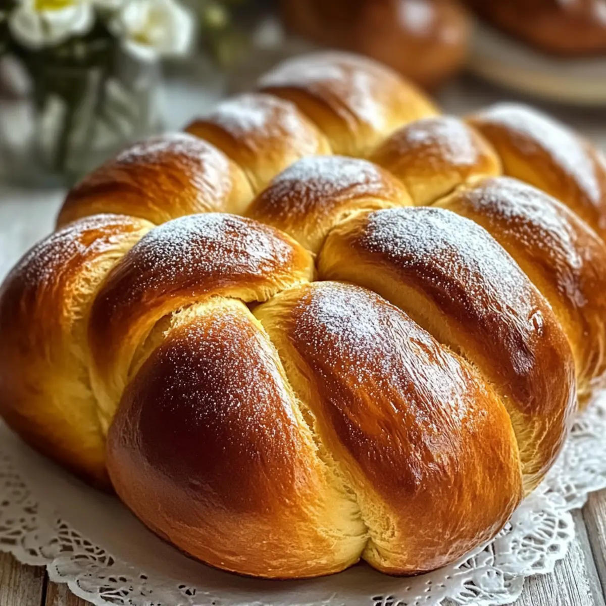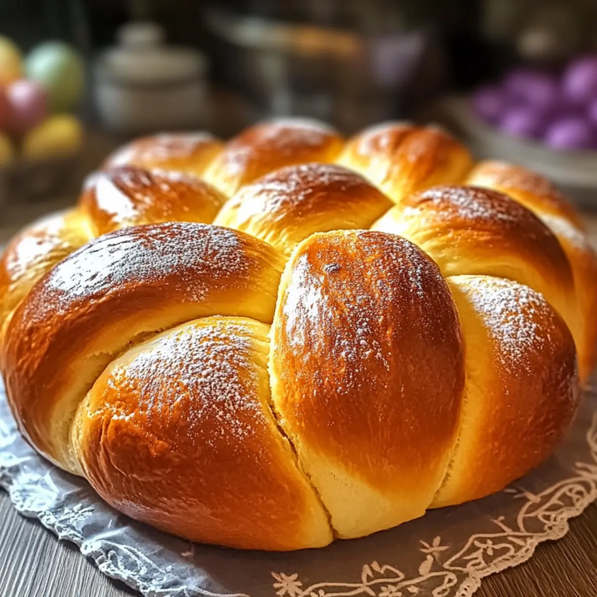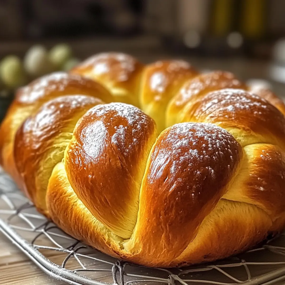 Nehme das Paska aus dem Ofen und lasse es vollständig auf einem Kuchengitter abkühlen, bevor du es in Scheiben schneidest. Für eine süßere Note kannst du optional Puderzucker darüberstreuen, bevor du das Brot servierst. Jetzt ist es bereit, auf deinem festlichen Tisch zu glänzen!