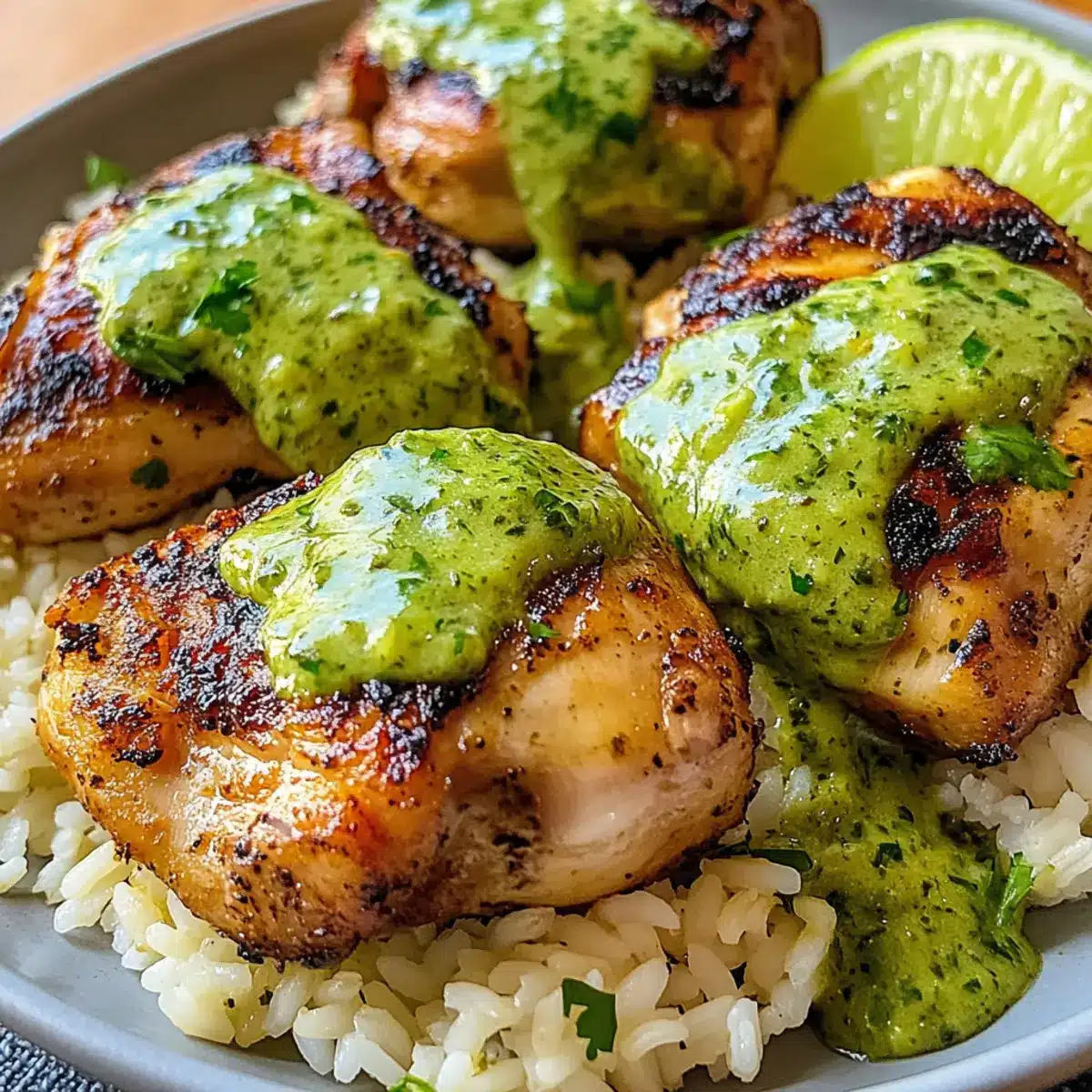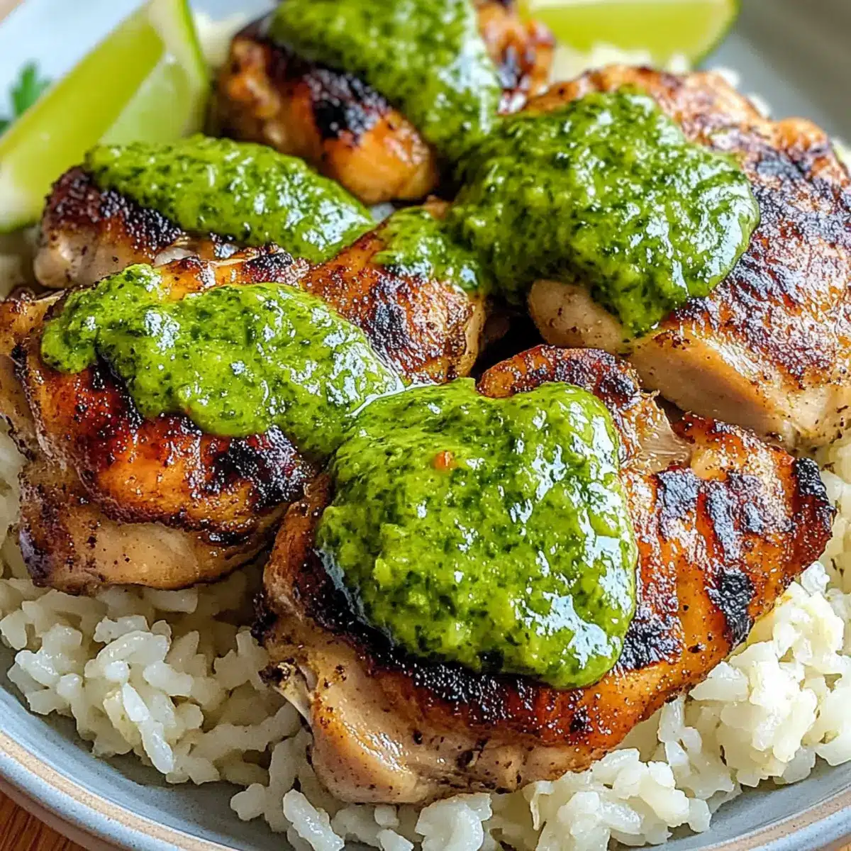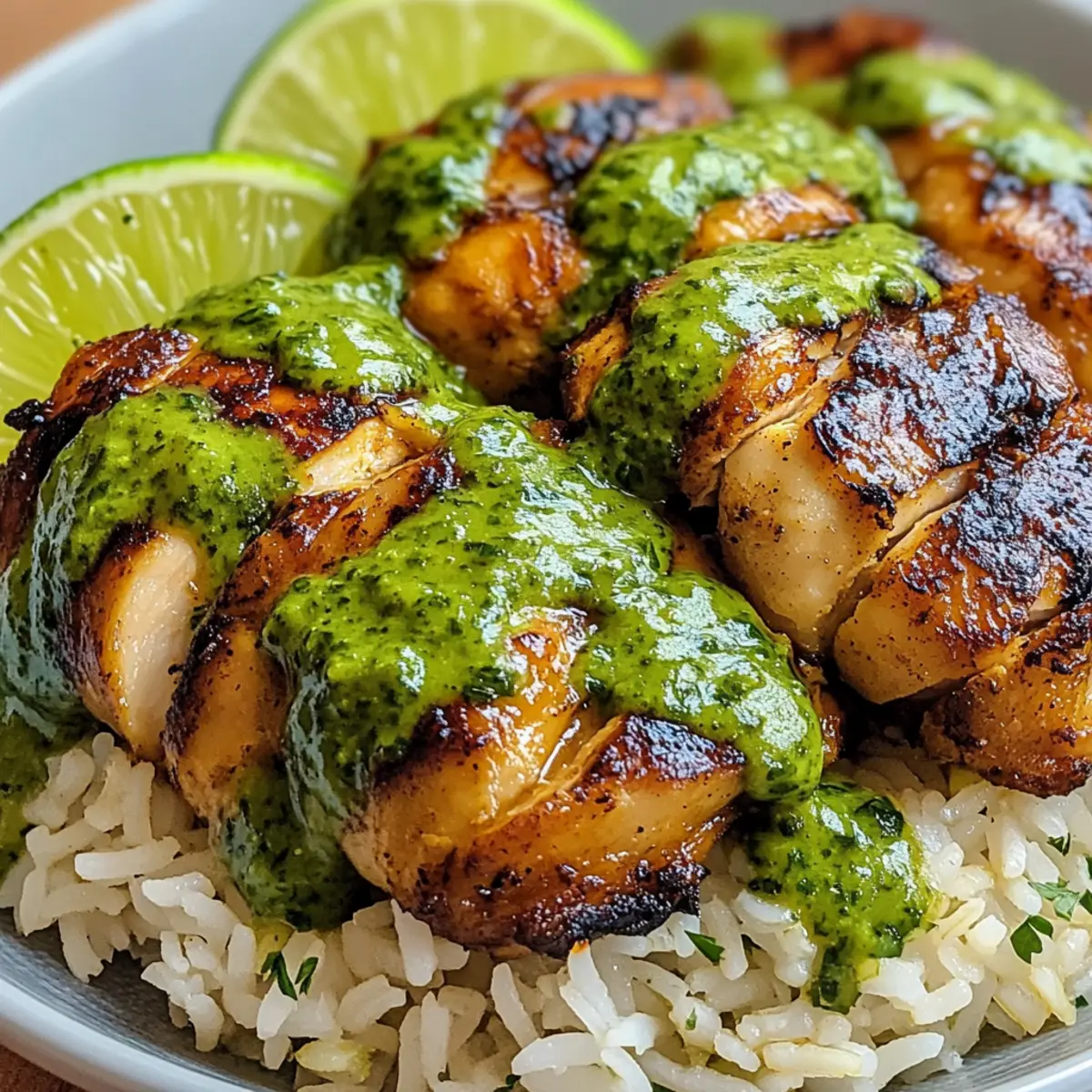 Den fluffigen Jasminreis auf Teller verteilen und die gebratenen Hähnchenteile darauf legen. Die grüne Sauce großzügig über dem Hähnchen und dem Reis verteilen. Für einen ansprechenden Look nach Belieben mit gehacktem Koriander, Limettenvierteln oder Avocadoscheiben garnieren.