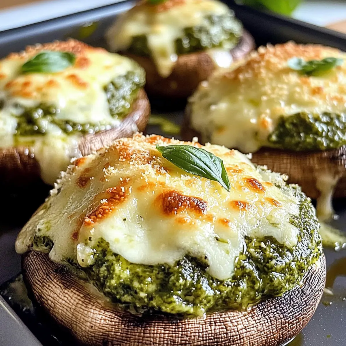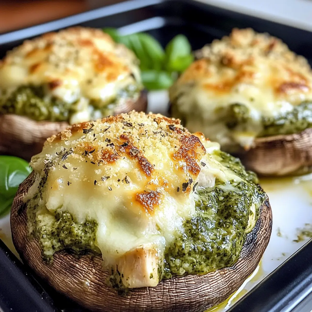 Pesto-Hühnchen gefüllte Pilze einfach selbst machen