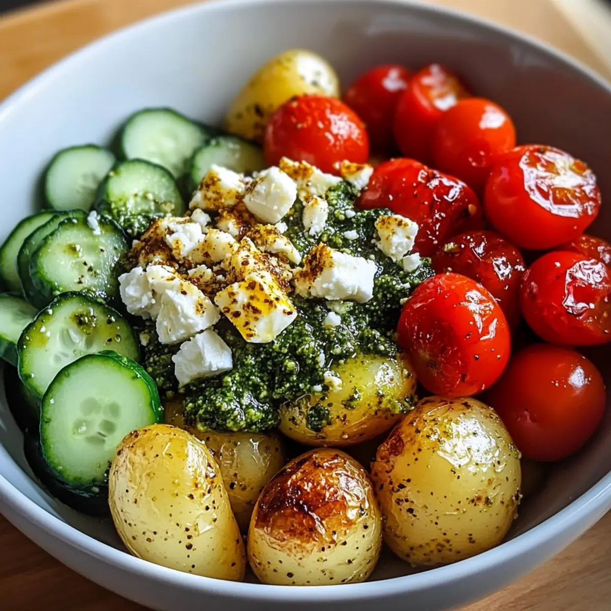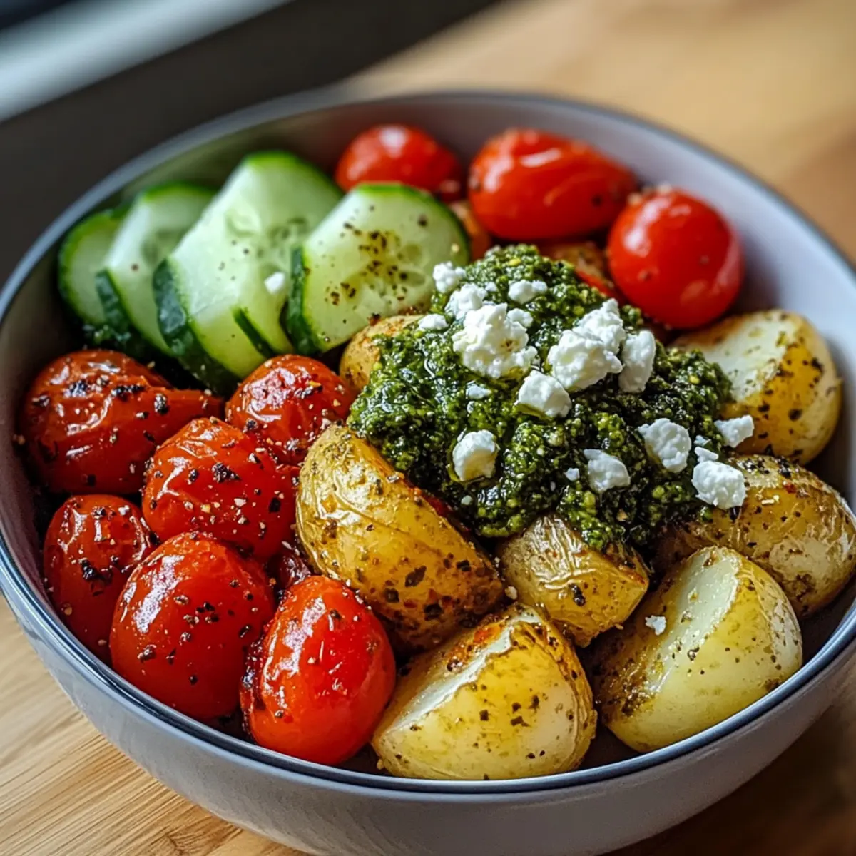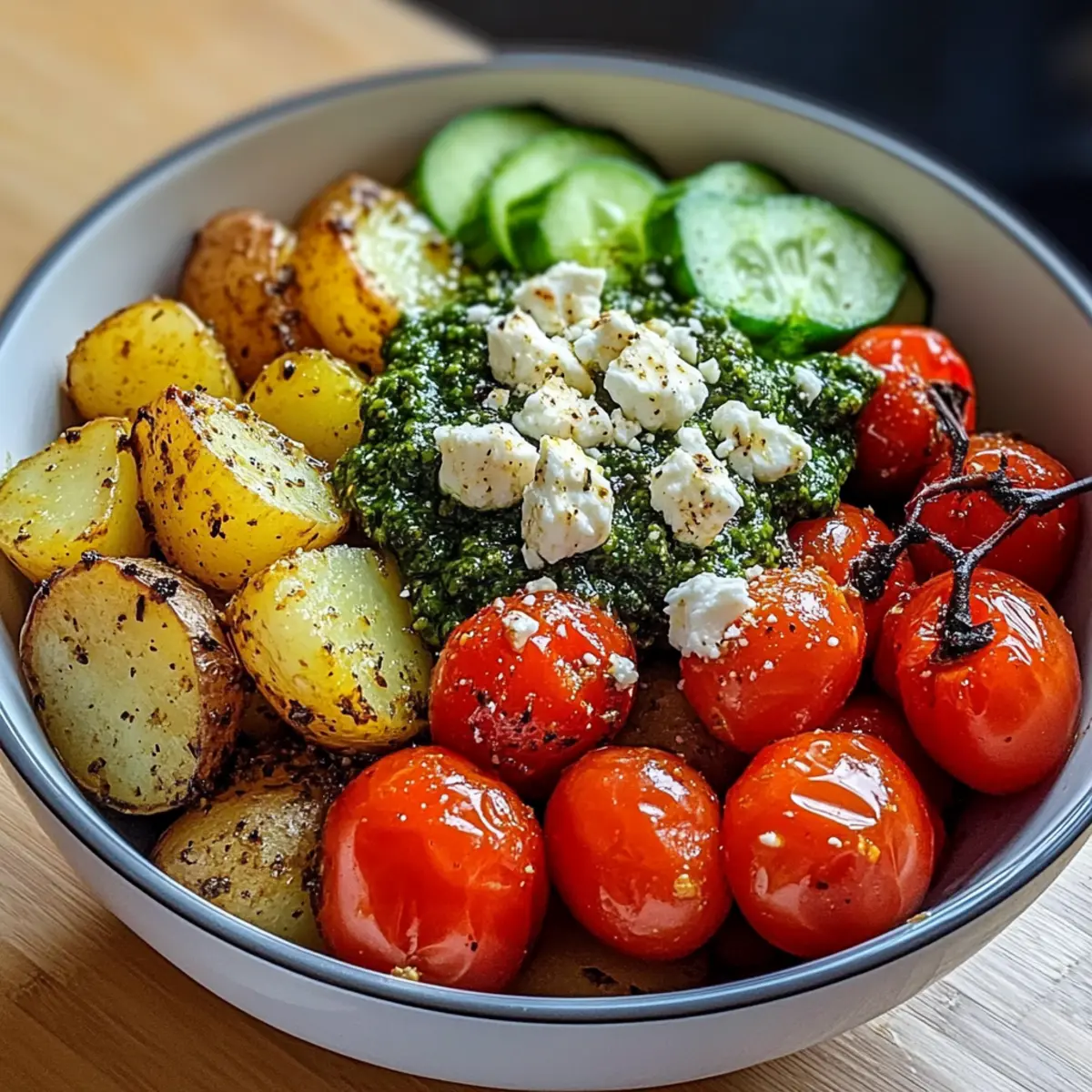 Kreiere deine eigene Pesto Kartoffel Schüssel und genieße die Aromen der mediterranen Küche!
