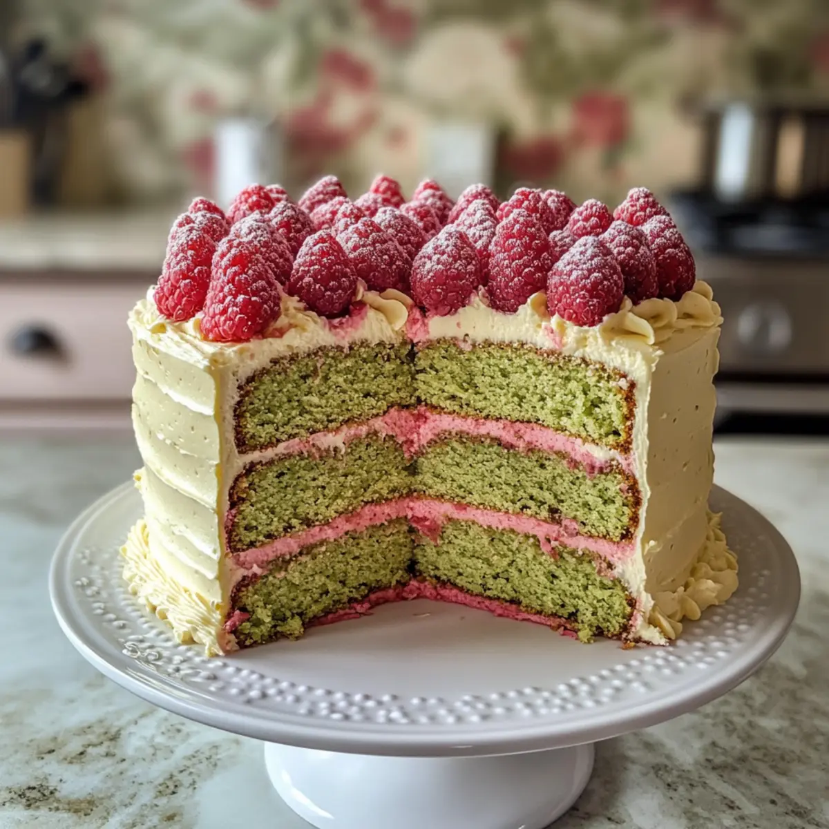 Für jeden Anlass: Ob Geburtstagsfeier oder gemütliches Kaffeetrinken, dieser Pistazien- und Himbeerkuchen wird stets ein Highlight. Serviere ihn mit frischen Himbeeren für das perfekte Finish.