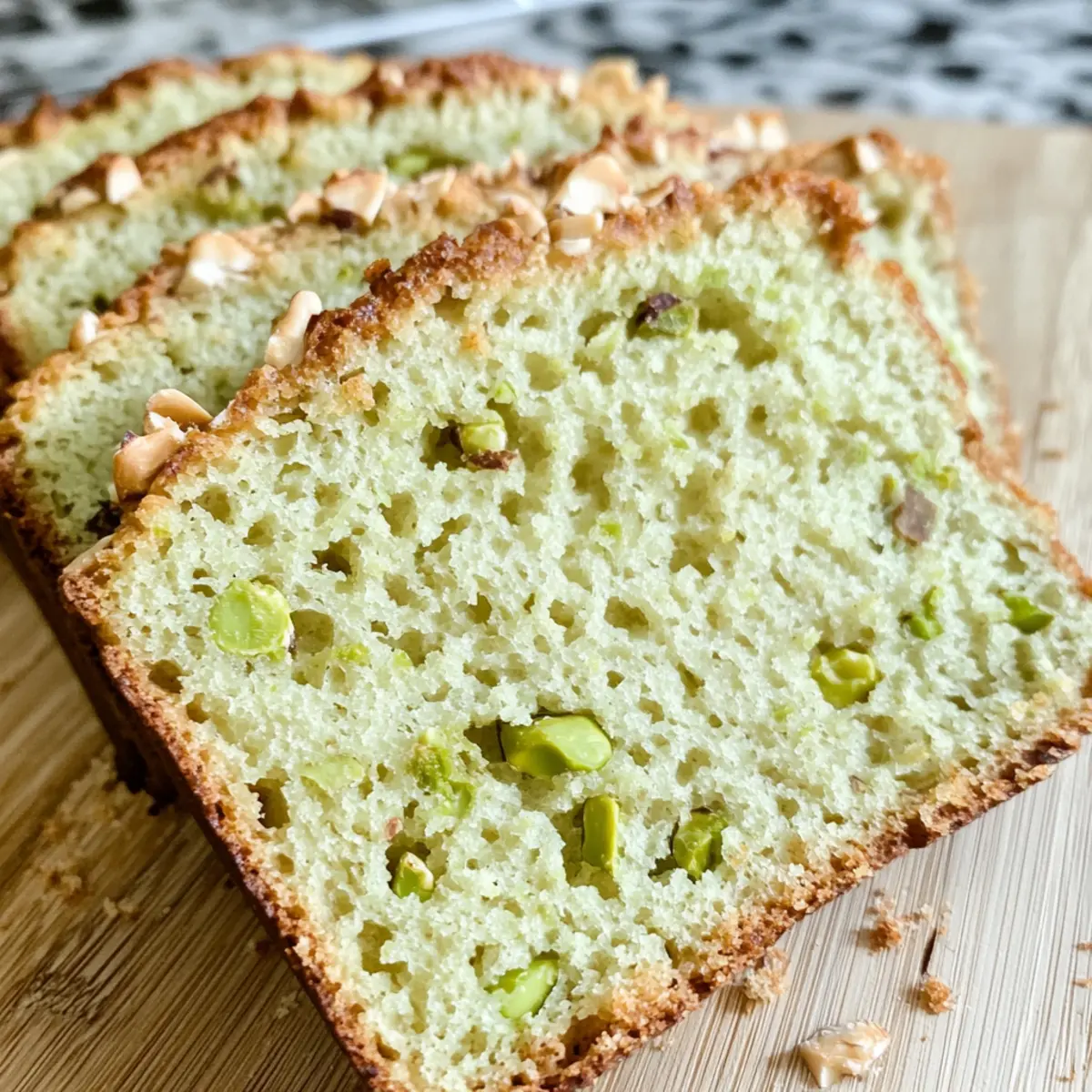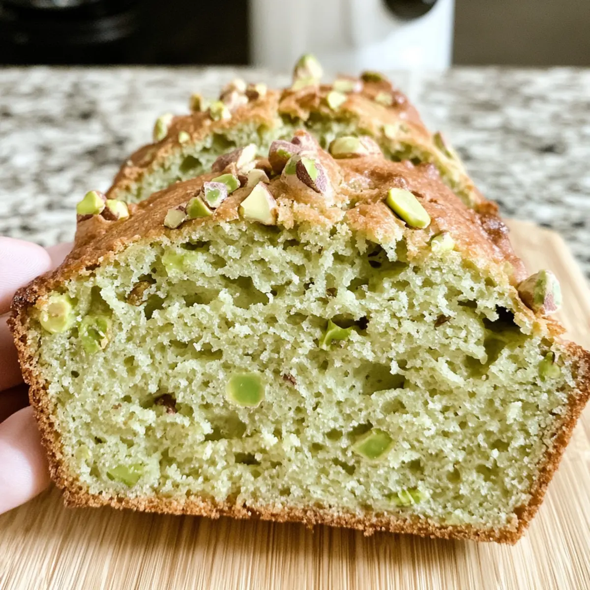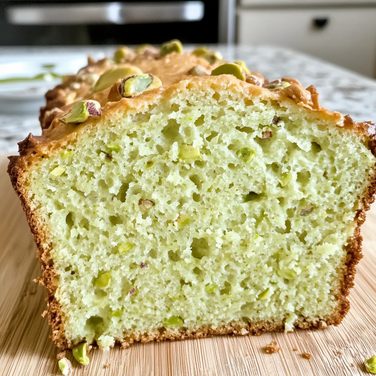 Zufriedenstellende Textur: Die feuchte, zarte Krume des Pistazienpuddingbrots macht jedes Stück zu einem wahren Erlebnis.