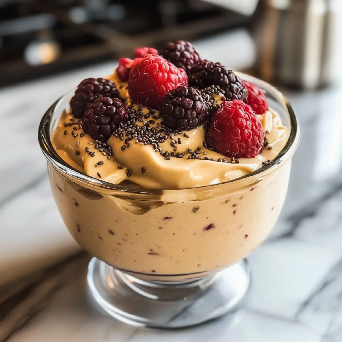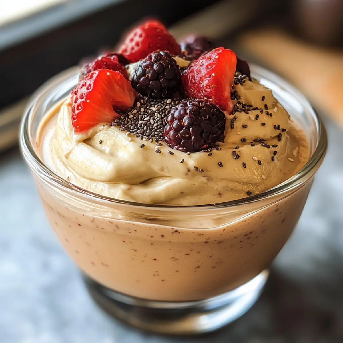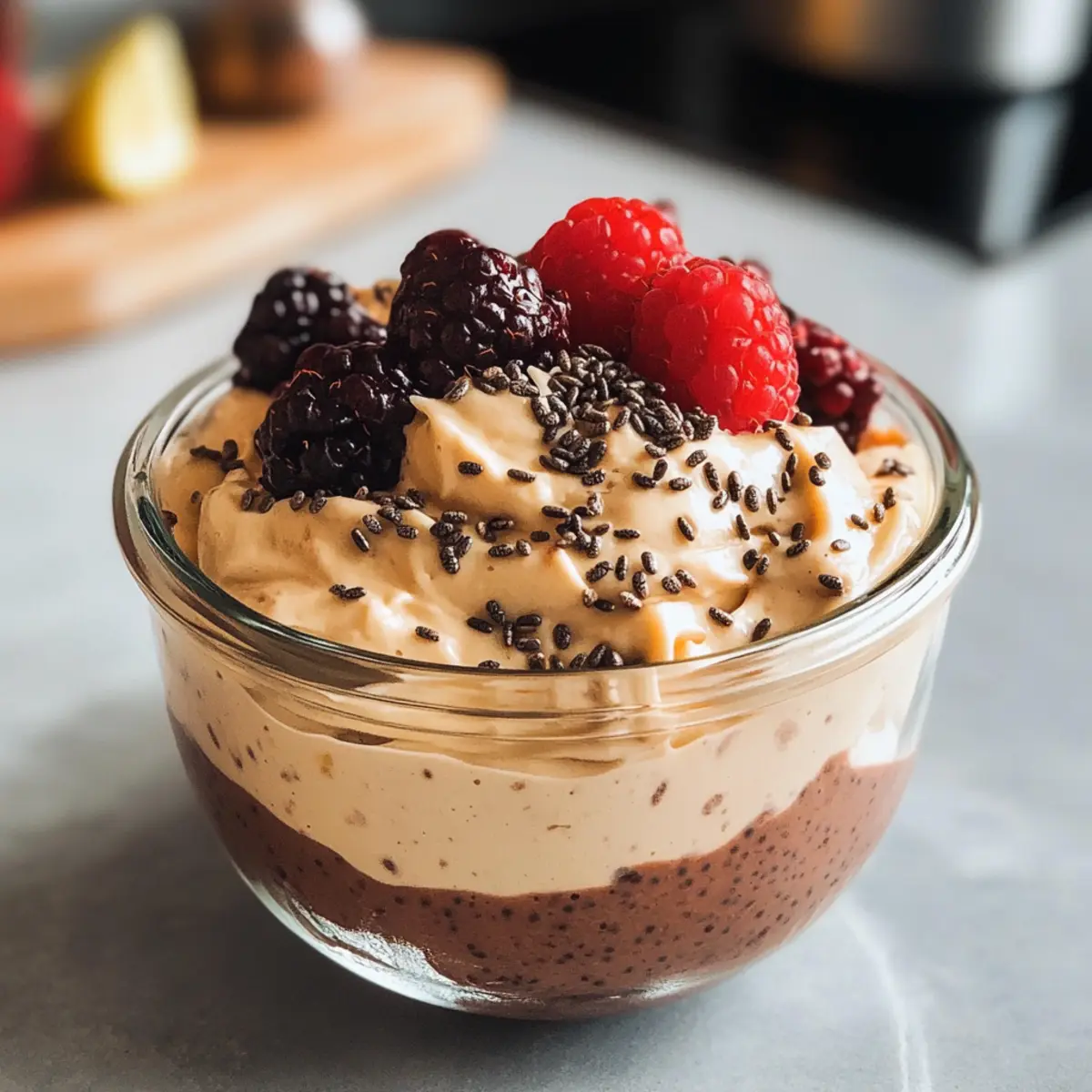 Genieße den cremigen Proteinpudding mit köstlichen Beilagen, die deinen Snack oder Dessert vervollständigen.