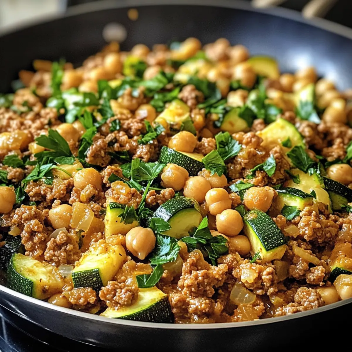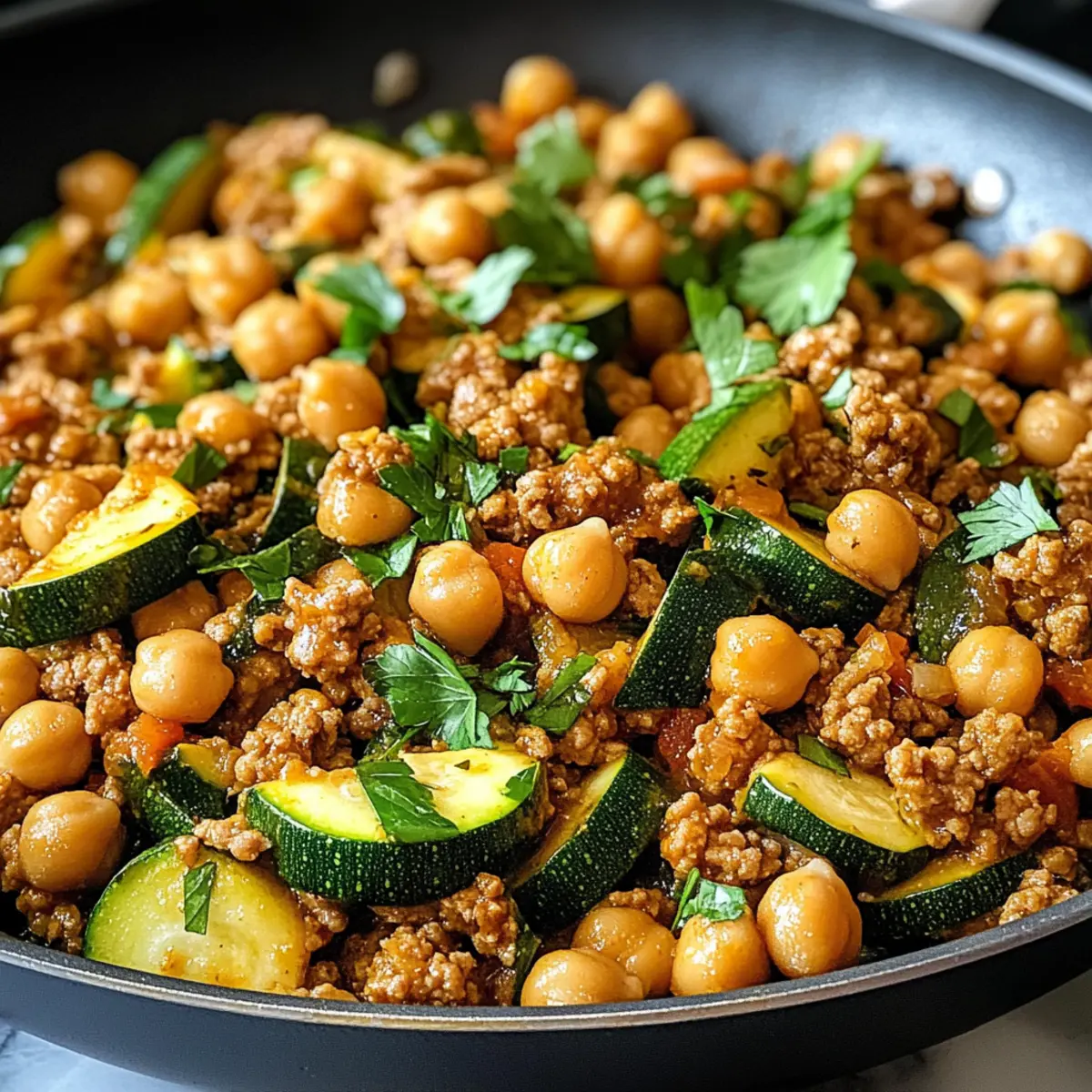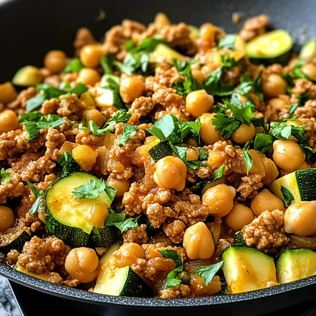 Mit diesen Zutaten bereitest du in Windeseile eine köstliche Putenhackfleisch Zucchini Kichererbsen Pfanne zu, die nicht nur gesund, sondern auch vollgepackt mit Geschmack ist!
