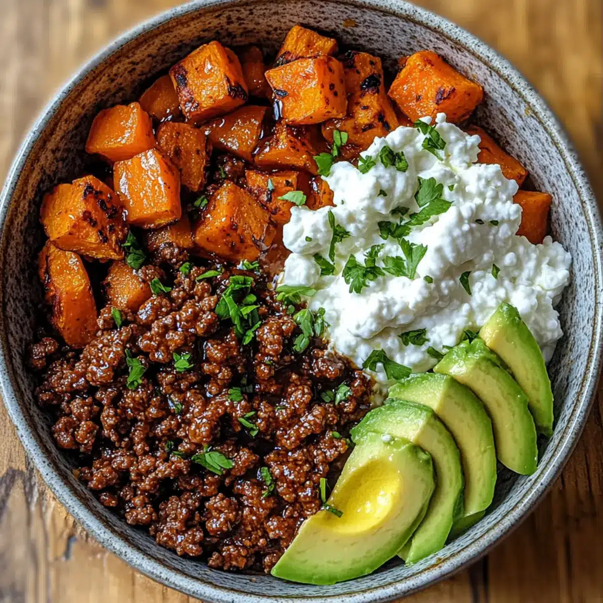 Die Möglichkeiten sind nahezu endlos! Du kannst statt Rinderhackfleisch auch gemischtes Hackfleisch oder sogar pflanzliche Alternativen verwenden. Um die Schüssel noch kreativer zu gestalten, experimentiere mit einem gesunden Gemüse wie Zucchini oder Rucola als zusätzliche Garnitur.