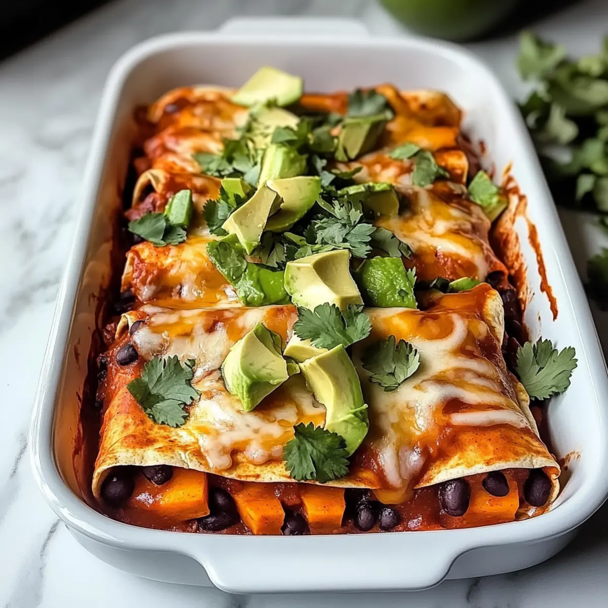 Schwarze Bohnen und Süßkartoffel Enchiladas einfach gemacht