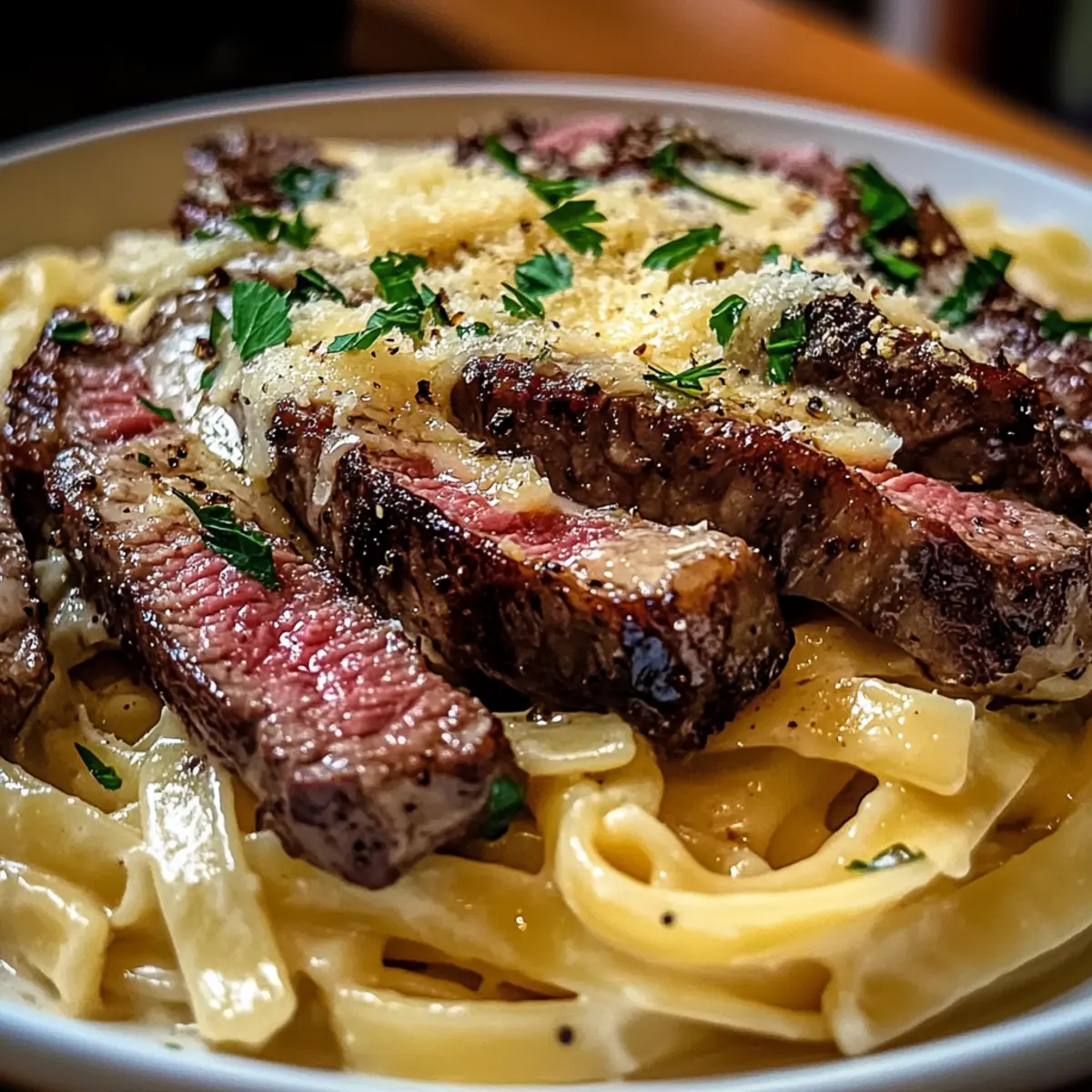 Nichts zaubert so schnell ein Lächeln auf die Gesichter meiner Liebsten wie eine köstliche Portion Steak und cremige Knoblauch-Parmesan-Pasta. Dieses Gericht ist nicht nur ein Fest für die Sinne, sondern auch eine wahre Zeitersparnis in der Küche: In nur 30 Minuten kannst du ein blitzschnelles Abendessen zaubern, das alle begeistert. Die saftigen Steakstücke verbinden sich mit einer dekadenten, cremigen Sauce, die jeden Pasta-Strang umhüllt und für einen Hauch von Luxus sorgt. Egal, ob du deine Gäste beeindrucken oder einfach einen entspannten Abend mit der Familie genießen möchtest, dieses Rezept ist eine großartige Wahl. Neugierig, wie du diese himmlische Mischung ganz einfach auf den Tisch bringen kannst? Lass uns gemeinsam in die Zubereitung eintauchen!