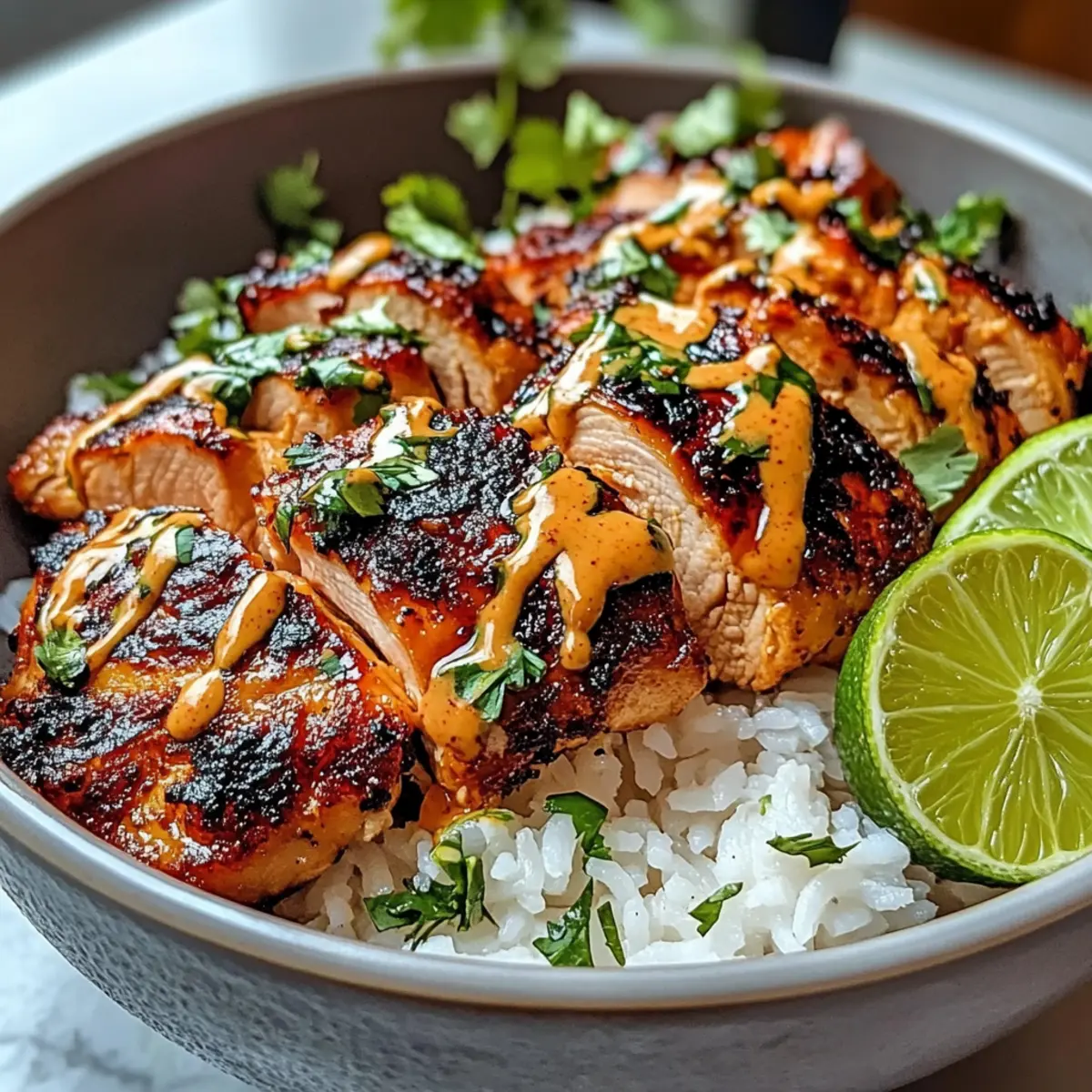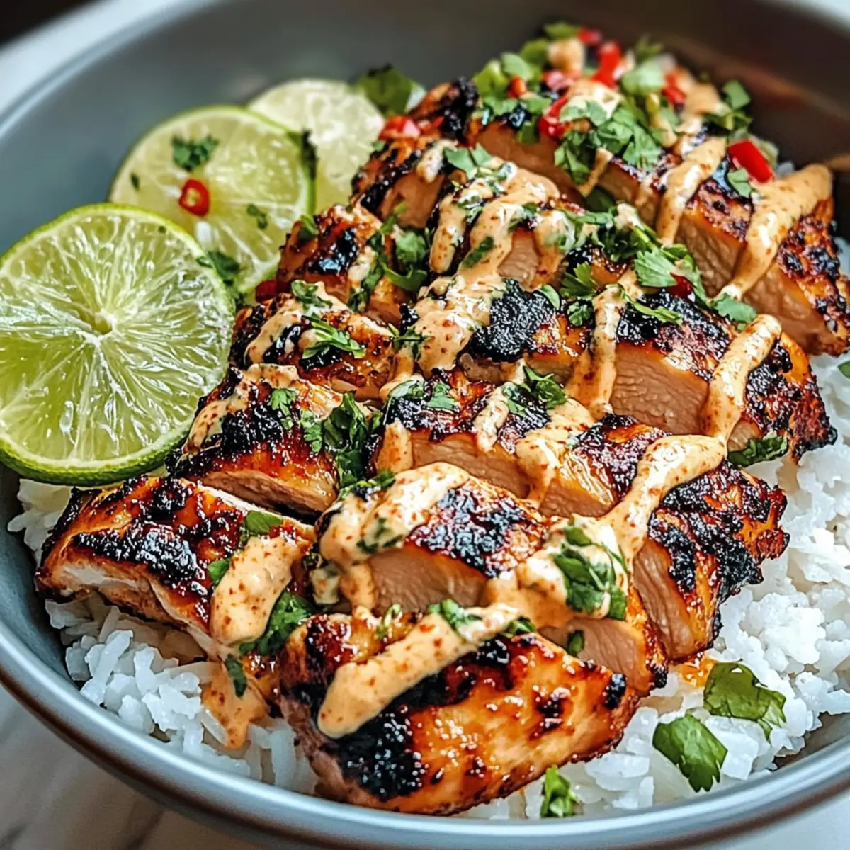 Süßer Chili-Hühnchen-Bowl mit Kokos-Limetten-Soße