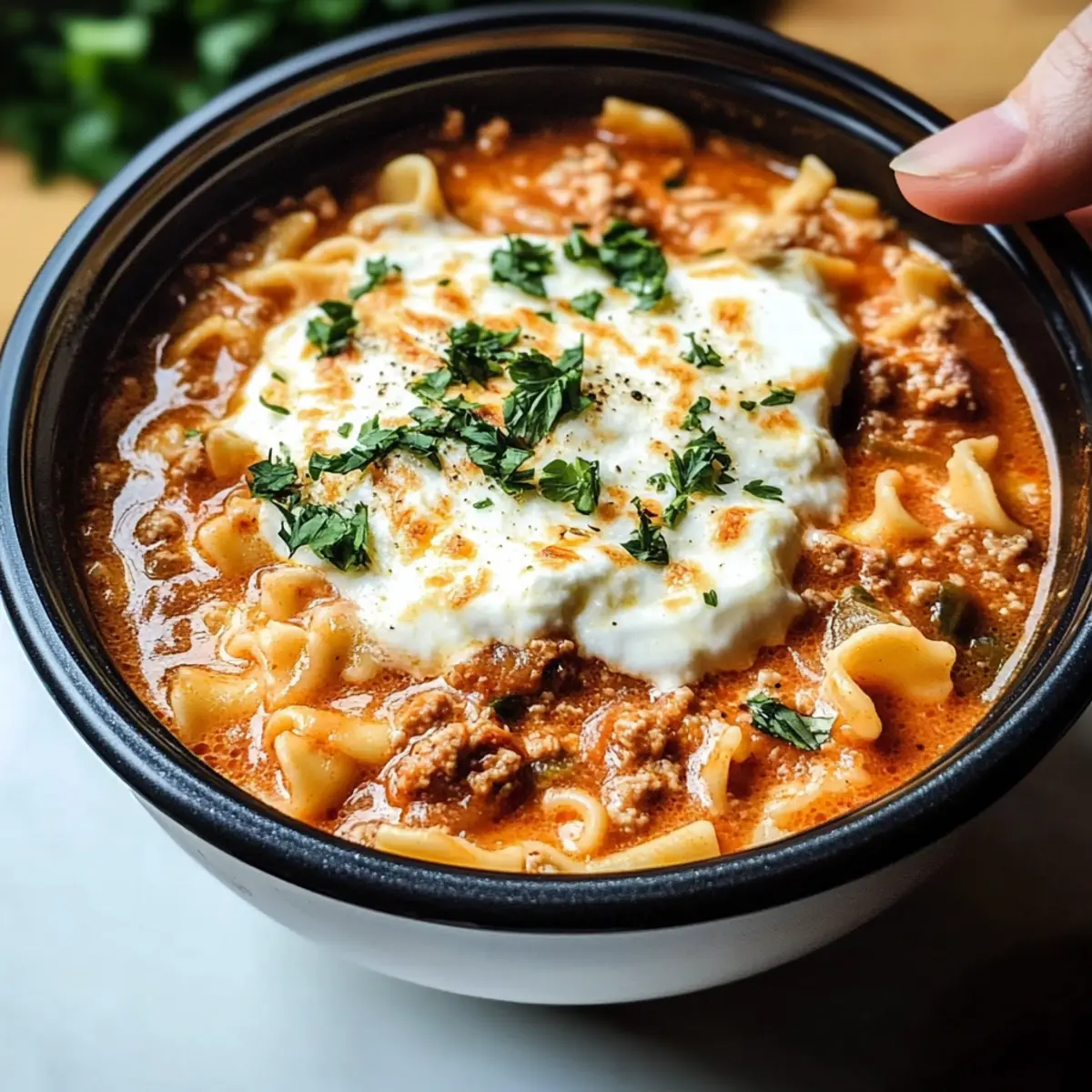 Rühren die Suppe leicht um und serviere sie heiß. Garniere optional mit frisch gehackter Petersilie, um einen Hauch von Frische und Farbe hinzuzufügen. Diese Topf Lasagne Suppe wird all deine Liebsten am Esstisch begeistern!