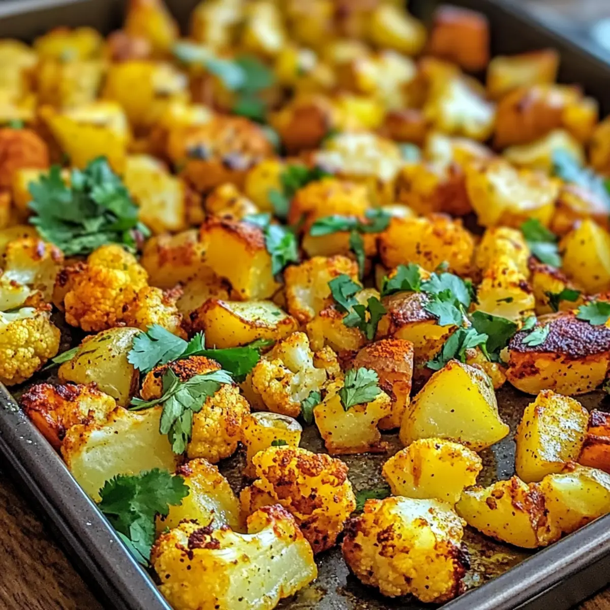 Aromatische Vielfalt: Die Kombination aus geröstetem Blumenkohl und Kartoffeln, gewürzt mit erdigen Aromen von Kurkuma und Kreuzkümmel, schafft ein unvergessliches Geschmackserlebnis.