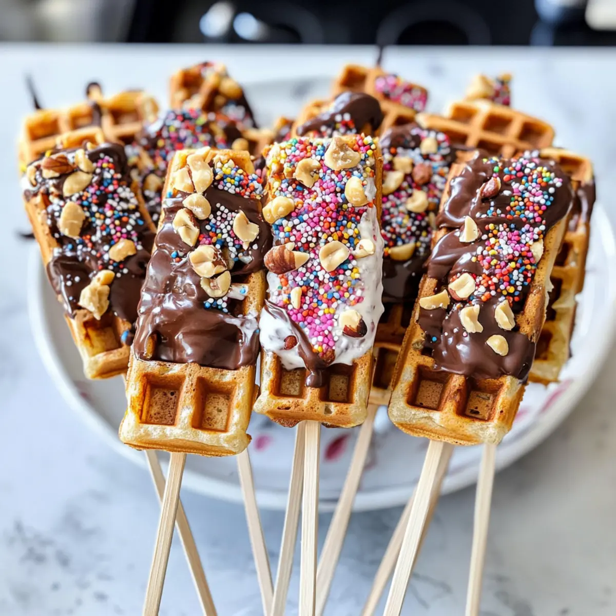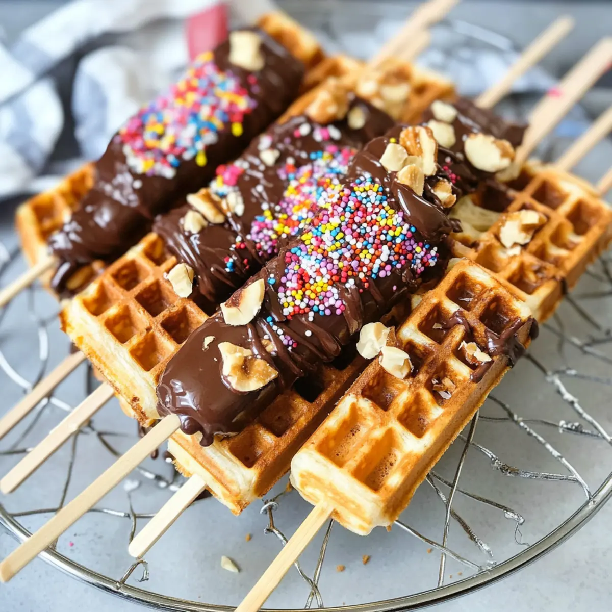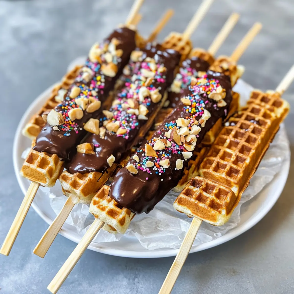 Einfachheit: Die Zubereitung ist kinderleicht, so dass du ohne großen Aufwand köstliche Waffeln am Stiel genießen kannst. Vielfalt: Mit verschiedenen Schokoladensorten und Toppings kannst du deiner Kreativität freien Lauf lassen und jeden Waffel-Lutscher einzigartig machen. Visueller Genuss: Diese Waffeln sehen nicht nur fantastisch aus, sondern schaffen auch eine fröhliche Atmosphäre bei jedem Anlass, von Kindergeburtstagen bis hin zu Familienfeiern. Ganze Familie: Sie sind ein Hit bei Kindern und Erwachsenen gleichermaßen – perfekt, um alle zum Schlemmen zu bringen. Schneller Snack: Ideal für eine süße Zwischenmahlzeit oder als Partyhäppchen, die in kürzester Zeit zubereitet sind. Probiere auch unsere Tipps zur Anpassung nach deinen Vorlieben!