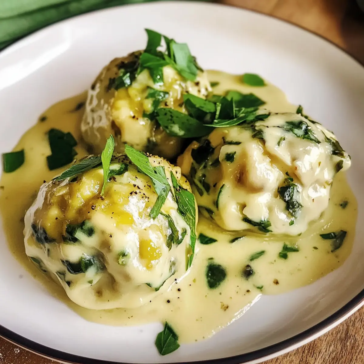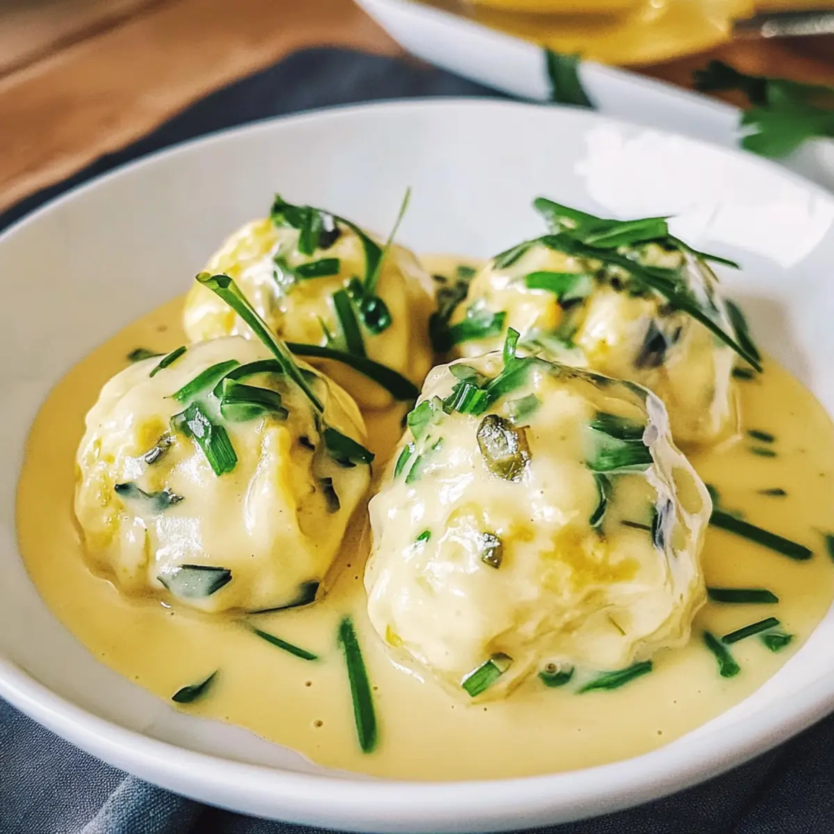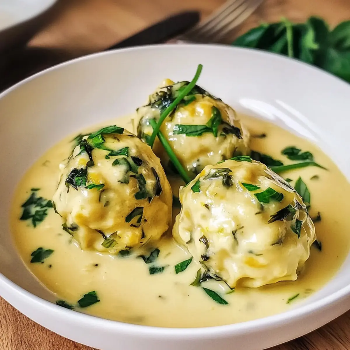 Wilder Knoblauchknödel mit cremiger Käsesauce