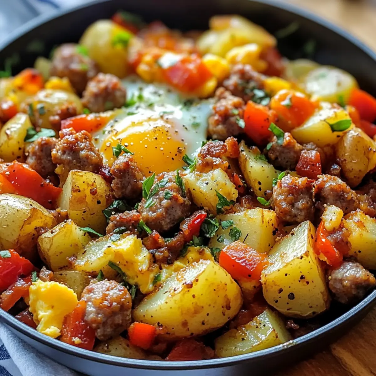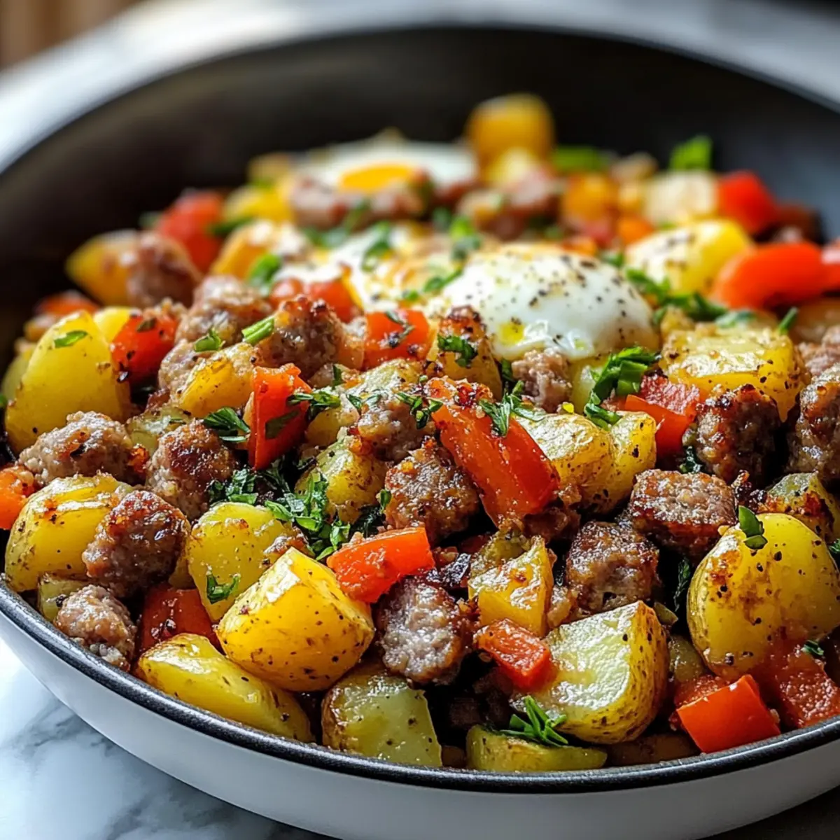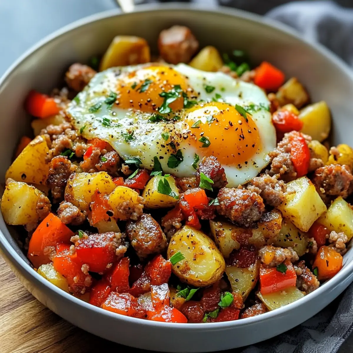 Es gibt Momente in der Küche, die einfach magisch sind – und einer davon ist, wenn der Duft von frisch gebratener Wurst und knusprigen Kartoffeln durch den Raum zieht. Diese Wurst- und Kartoffel-Frühstücksschalen sind nicht nur ein Fest für die Sinne, sondern verwandeln auch Ihr Frühstück in ein herzhaftes Erlebnis. Mit einer Mischung aus zarten Kartoffeln, würziger Wurst, bunten Paprika und perfekt gegarten Eiern bietet dieses Gericht alles, was man sich für einen energiereichen Start in den Tag wünscht. Die Zubereitung im Skillet sorgt dafür, dass Sie mit minimalem Aufwand ein leckeres und anpassbares Frühstück zaubern können, perfekt für hektische Morgen oder gemütliche Brunchs. Sehen Sie sich an, wie einfach es ist, Ihre Lieblingsgemüse und -proteine in diese glutenfreie Delikatesse zu integrieren – und welche kreativen Varianten Sie daraus machen können! Sind Sie bereit, Ihrer Frühstücksroutine einen neuen Dreh zu geben?