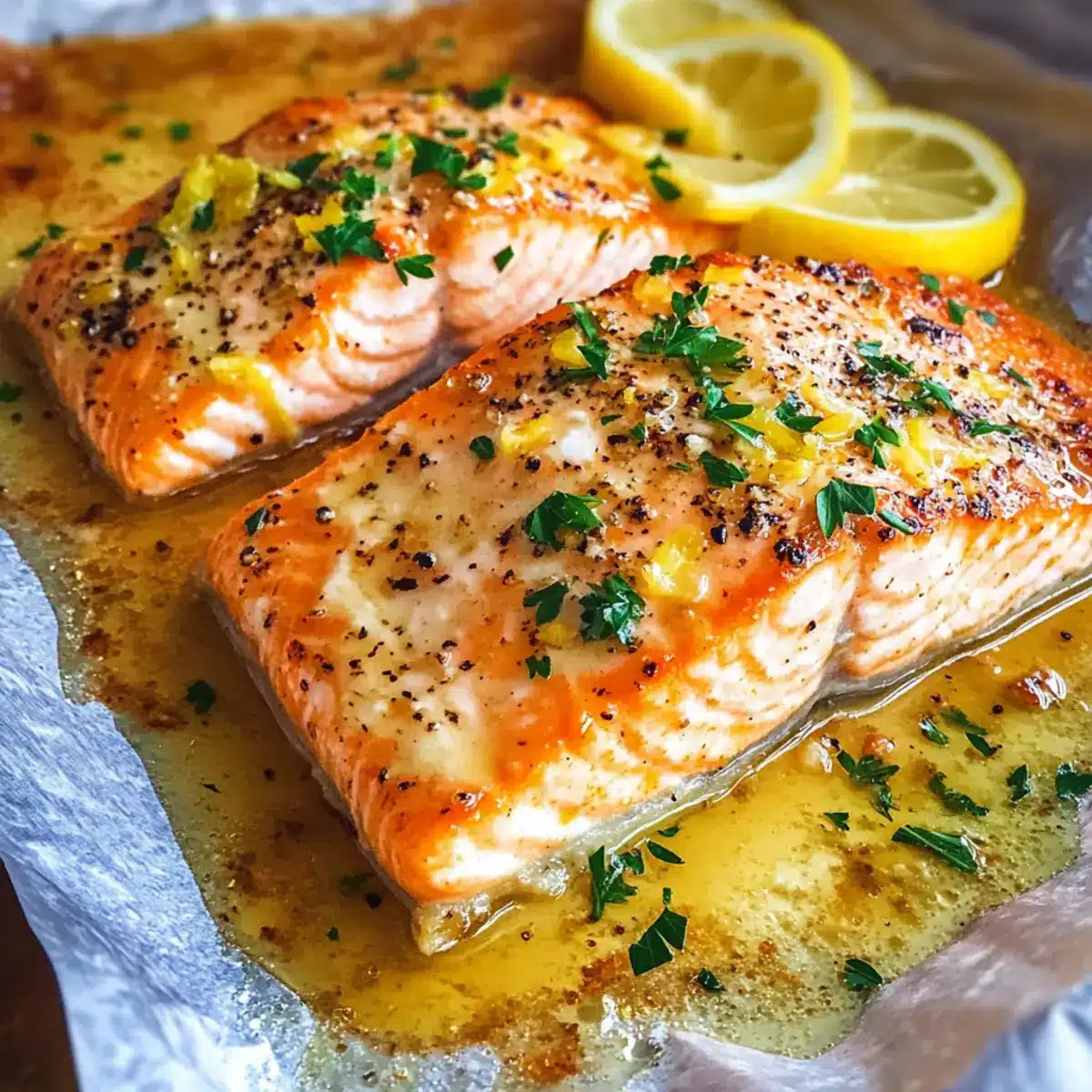 Entdecke mit diesem Rezept den köstlichen Zitronen-Knoblauch-Butter-Lachs, der in nur 30 Minuten zubereitet ist, und bringe frische Aromen auf deinen Tisch!